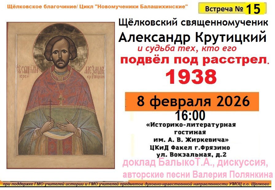 28 декабря 2025 года в «Историко-литературной гостиной им. А.В.Жиркевича» ЦКиД «Факел» г.Фрязино состоялась четырнадцатая встреча из цикла «Новомученики Балашихинские: история…