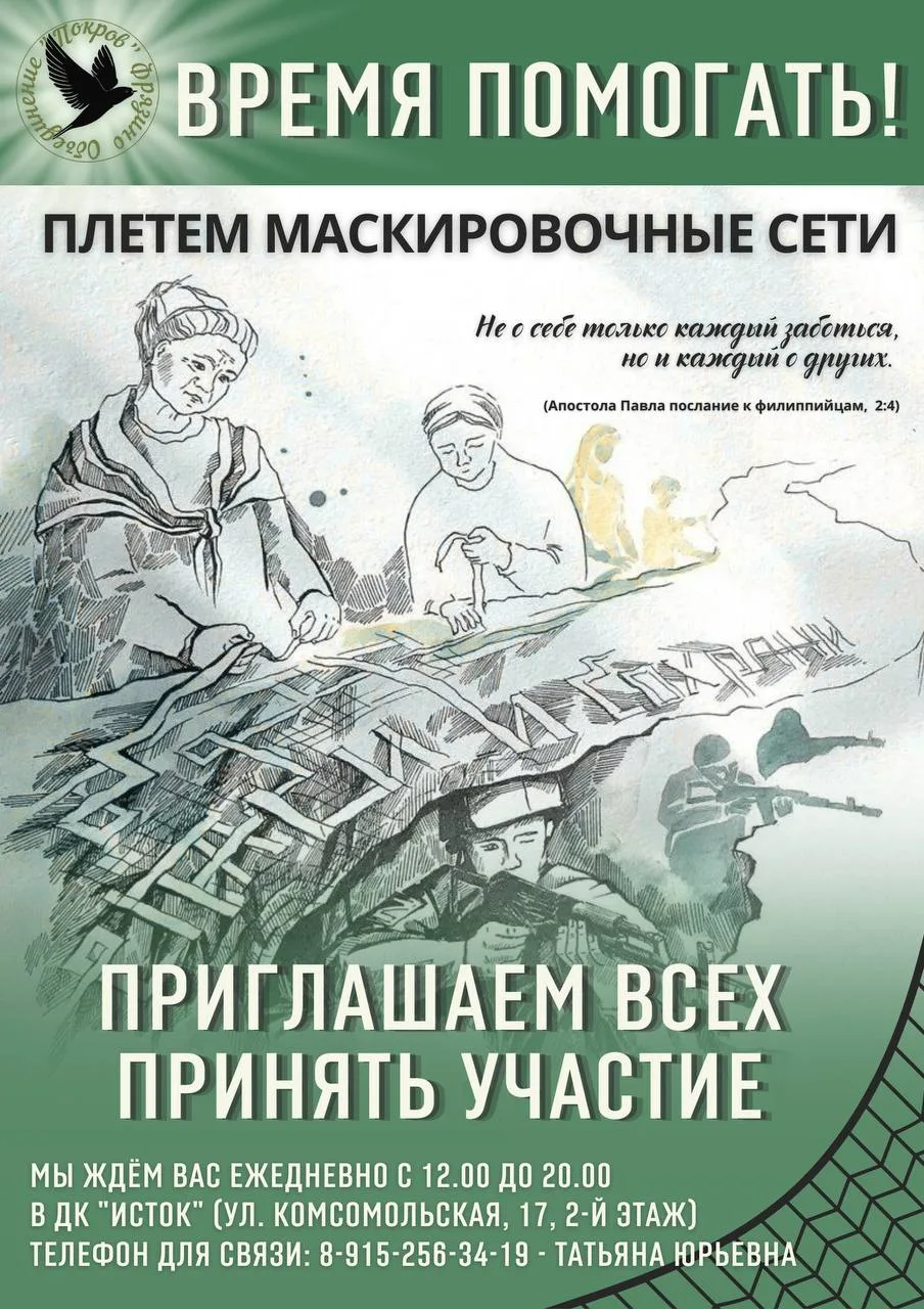Приглашаем всех желающих поучаствовать в этом богоугодном деле - плетение маскировочных сетей для защиты наших воинов. Потребность в сетях просто…