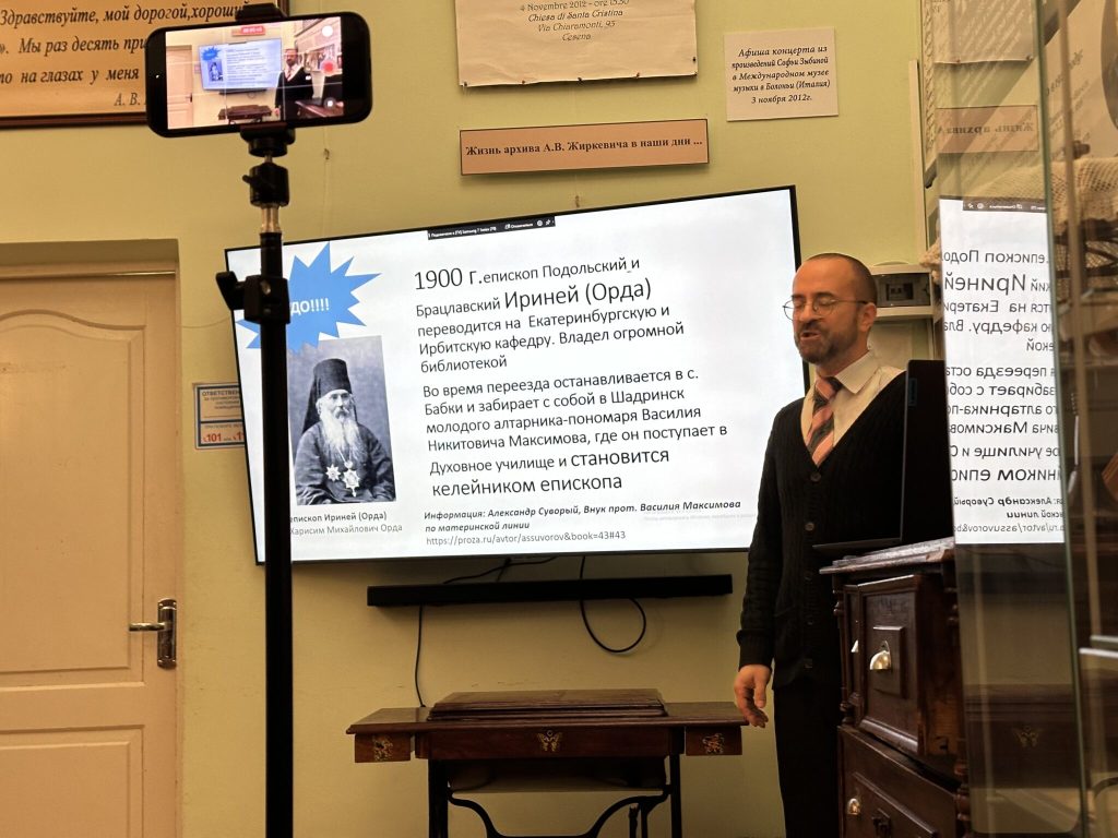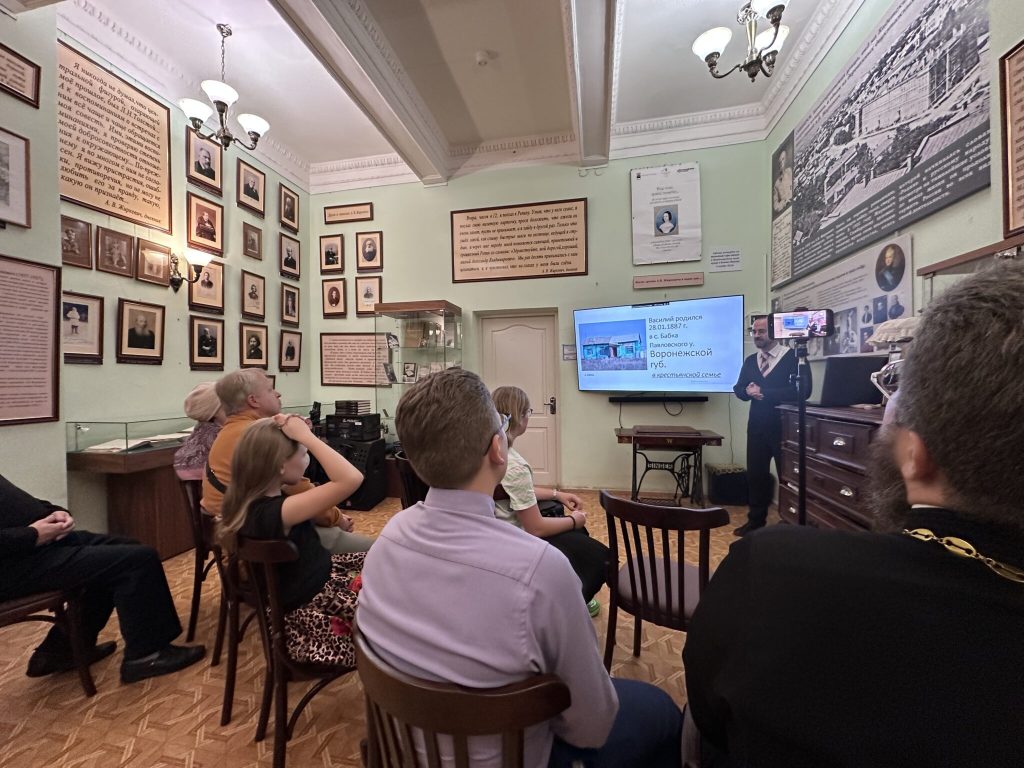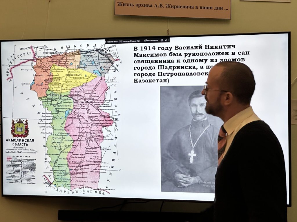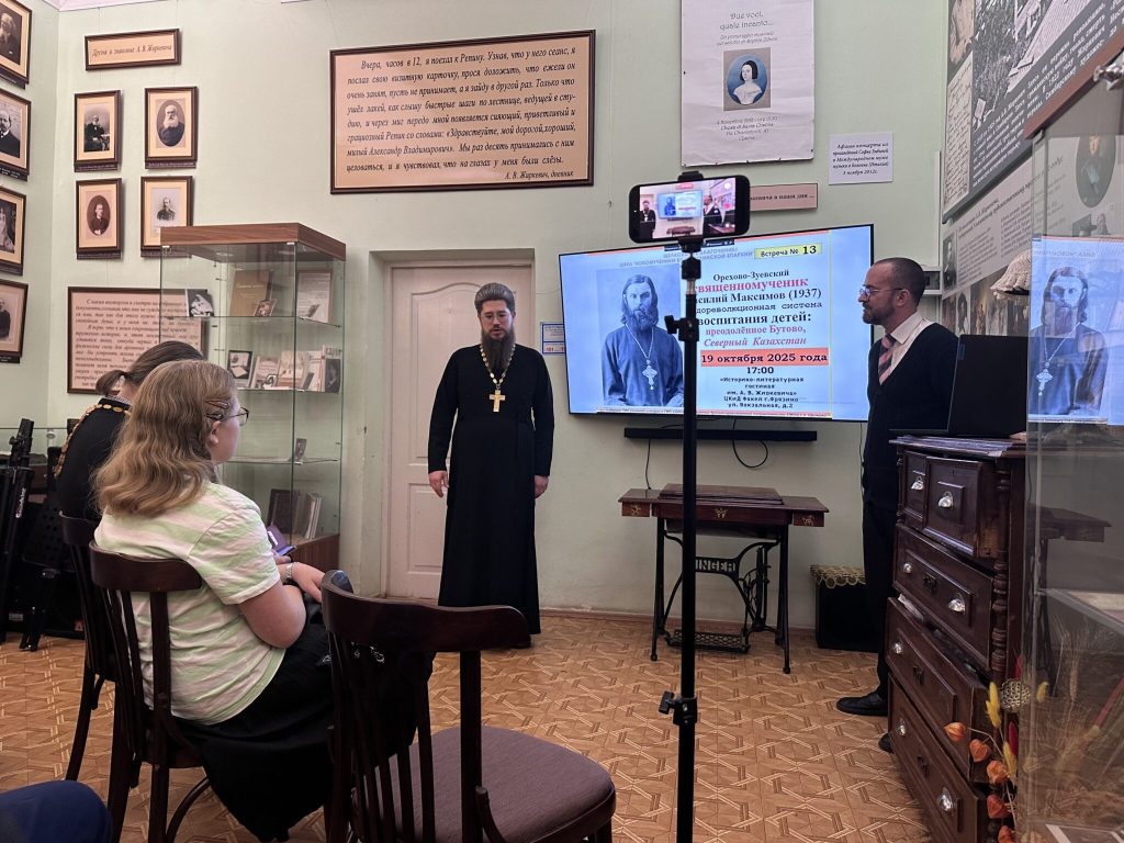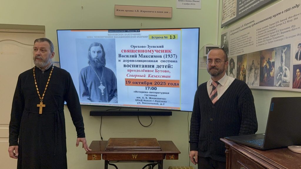 19 октября 2025 года в «Историко-литературной гостиной им. А.В.Жиркевича» ЦКиД Факел г.Фрязино состоялась тринадцатая встреча из цикла «Новомученики Балашихинские: история и современное почитание», в рамках которого проходят беседы и доклады о подвиге новомучеников Балашихинской епархии. В этот раз доклад и общественная дискуссия были посвящены теме: «Орехово-Зуевский священномученик Василий Максимов (1937) и дореволюционная система воспитания детей: Северный Казахстан и преодолённое Бутово».