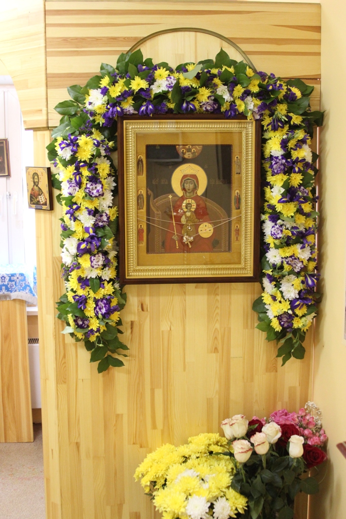 18 сентября 2012 года митрополит Крутицкий и Коломенский Ювеналий дал благословение на образование прихода храма иконы Божией Матери Державная. Усилиями верующих при поддержке администрации неподалеку от места строительства в съемной квартире был организован временный домовый храм, в котором 14 октября 2012 года было совершено первое молебное пение с акафистом, а 28 октября того же года— первая Божественная литургия.