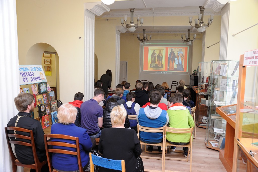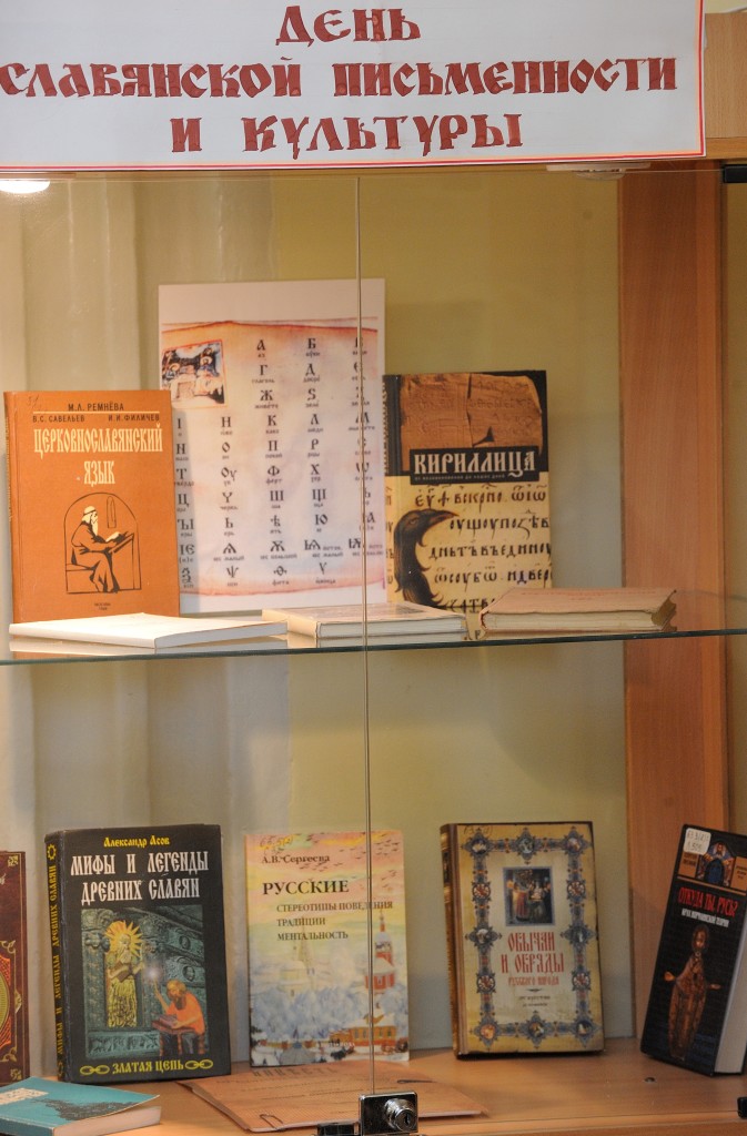 24 мая в Культурном центре города Фрязино состоялось празднование Дня славянской письменности и культуры, подготовленное при поддержке Фрязинской городской библиотеки. На празднике среди почетных гостей присутствовали начальник Управления культуры наукограда А.В.Полухина и настоятель Державного храма священник Димитрий Поповский, которые обратились к собравшимся со словами приветствия.Гости мероприятия в этот день могли услышать классическую музыку в исполнении ансамбля «Рондо», лекции ведущих специалистов фрязинской библиотеки об истоках письменности на Руси, а также увидеть на стендах музея образцы древних книг.