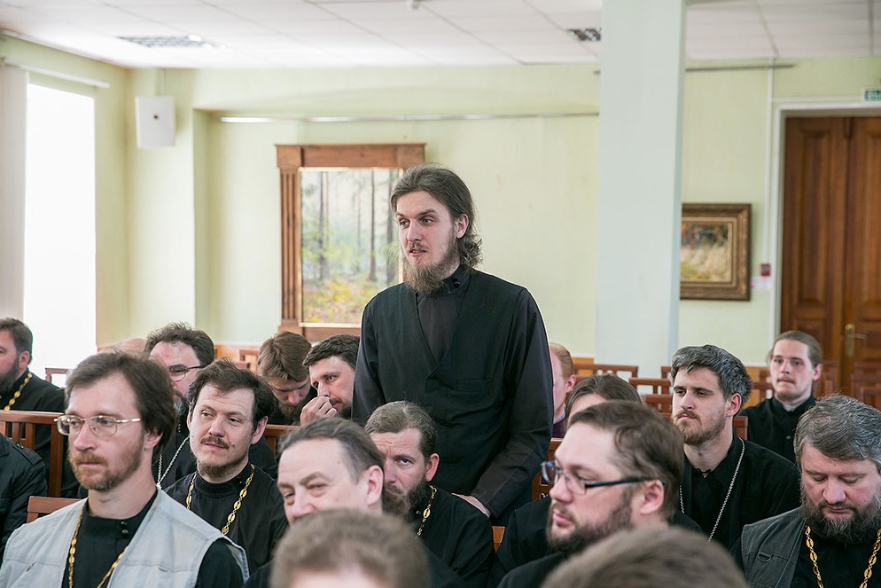 В завершение собрания состоялся пастырский семинар настоятеля храма Святой Троицы в Хохлах г. Москва протоиерея Алексия Уминского «Жизнь прихода».