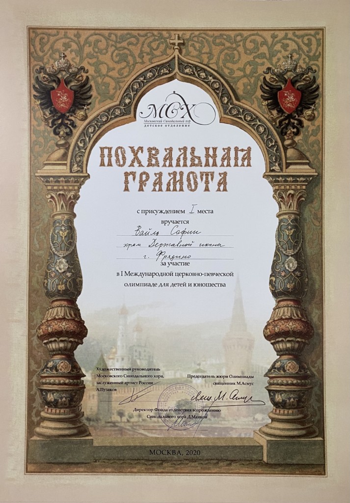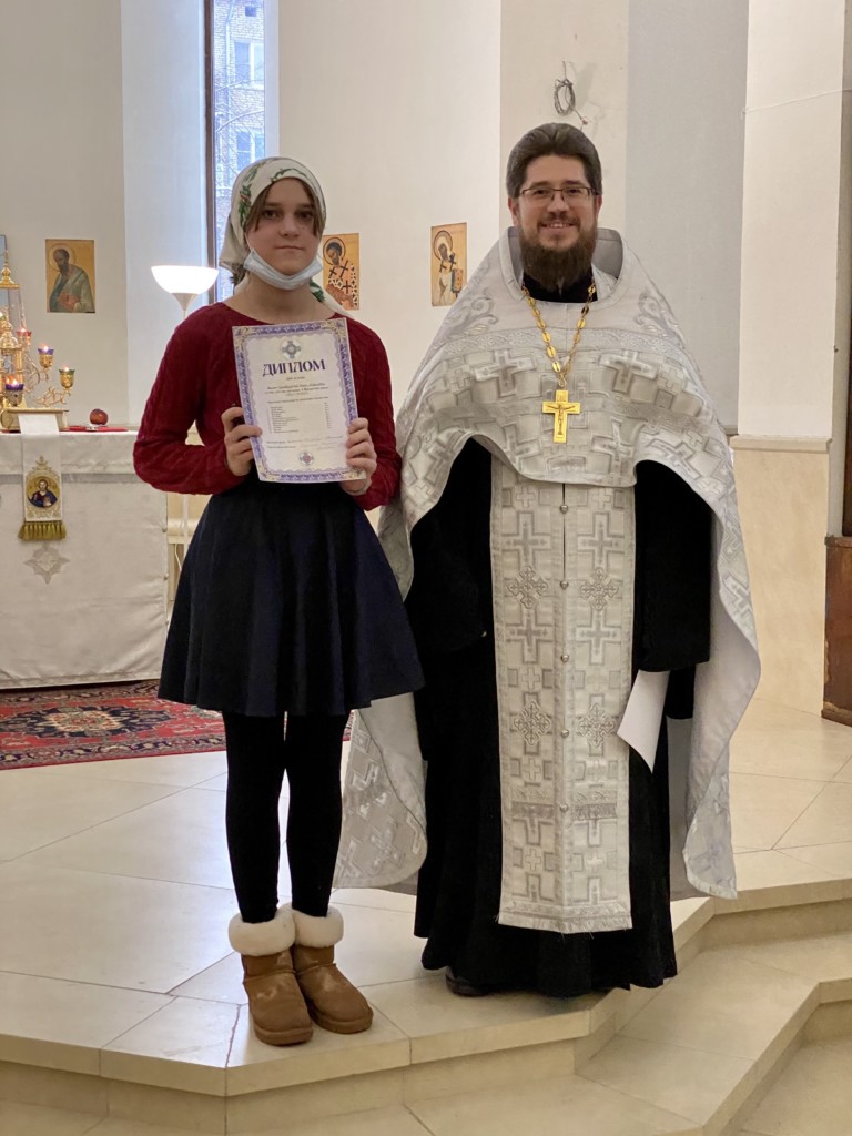 После выпускников чествовали победителей I Международной церковно-певческой олимпиады для детей и юношества. Брель Ксения и Вайль София заняли I место. Воробьева София — II место. Третьякова Алевтина получила грамоту за участие.