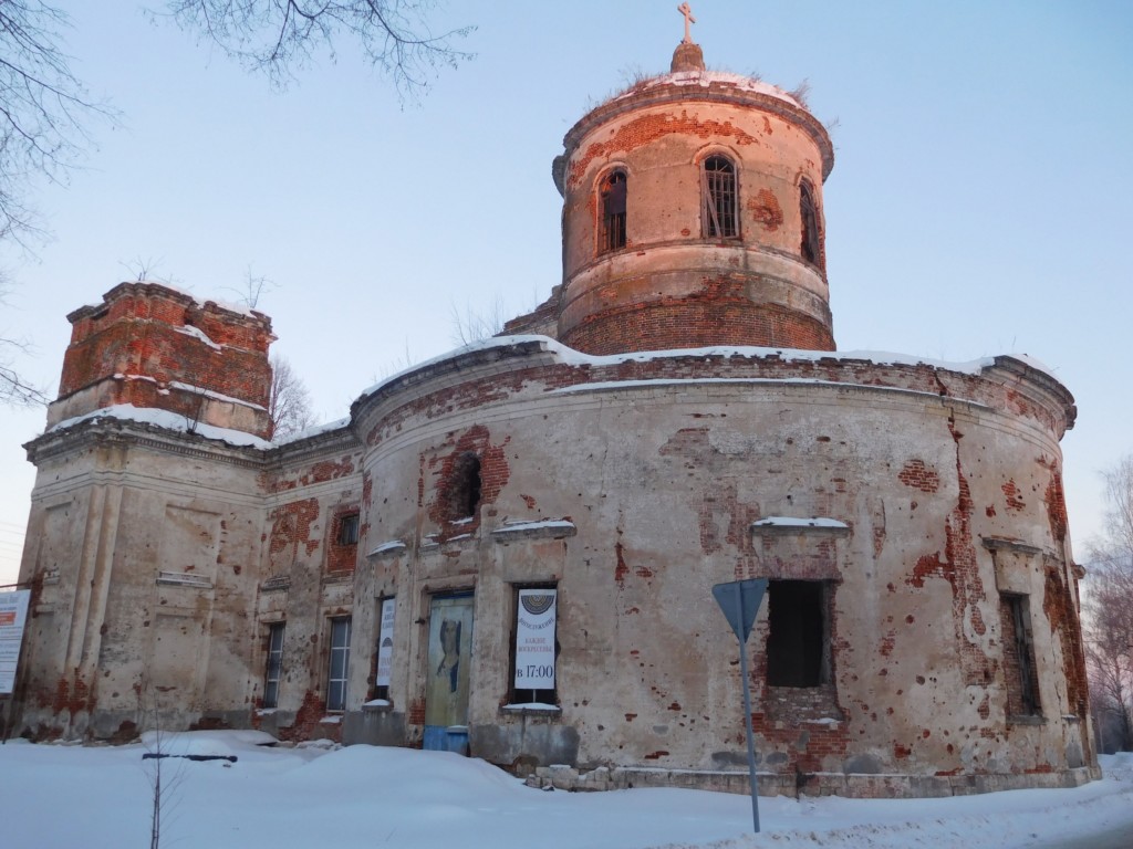Здание церкви представляет собой круглую ротонду с массивным световым барабаном, к которой с запада примыкает трапезная с двумя колокольнями. Выстроенная в формах классицизма церковь стоит на белокаменном цоколе с белокаменными деталями декора.