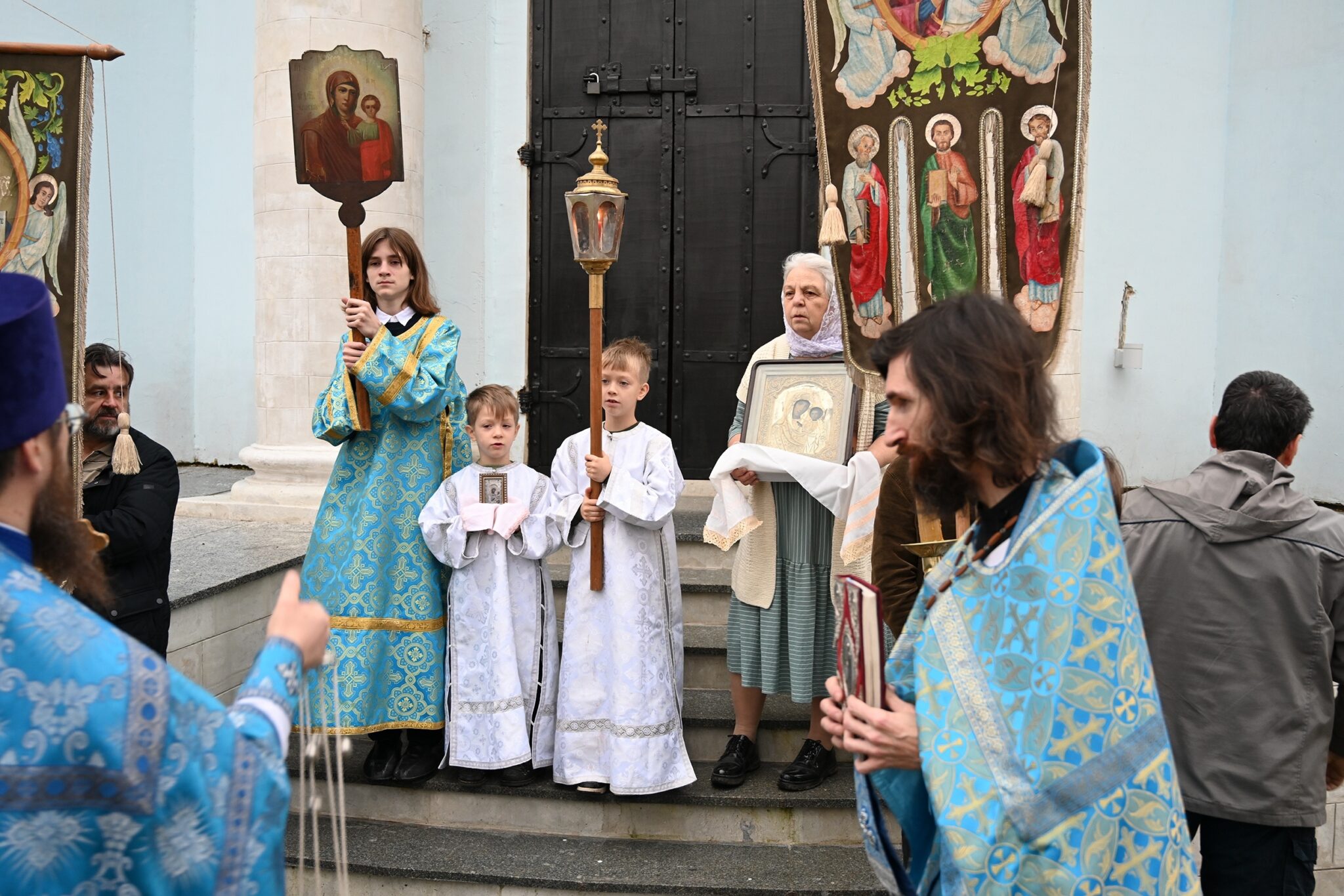 После Литургии был совершен праздничный крестный ход вокруг храма.