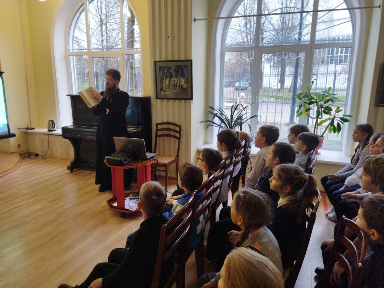 14 ноября в Культурном центре г.Фрязино в рамках Рождественских образовательных чтений прошла встреча учащихся начальной школы школы №1 г.Фрязино с настоятелем Державного храма г.Фрязино священником Димитрием Третьяковым.