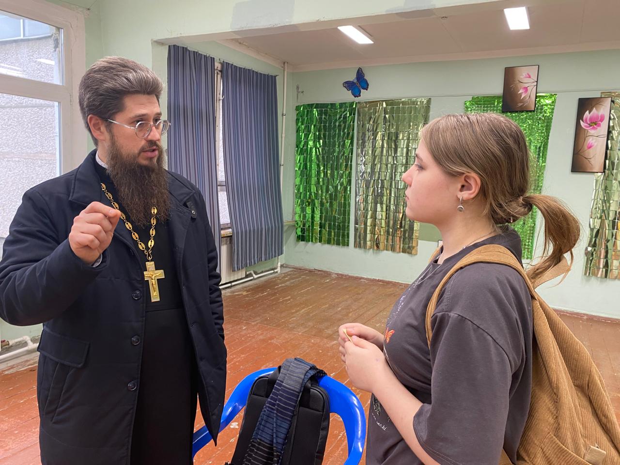 С большим интересом и вниманием ребята слушали и задавали вопросы батюшке. Открытый диалог стал настоящим откровением для обеих сторон. Ребята не стеснялись задавать самые сложные и, порой, провокационные вопросы о смысле жизни, отношениях между людьми, выборе жизненного пути, проблемах современного общества. Старшеклассники искренне и открыто говорили о своих переживаниях; каждый вопрос — это глубокие философские размышления, в которых трудно разобраться молодому неопытному человеку.