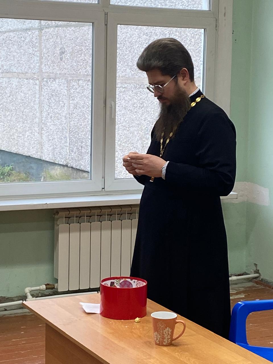 11 ноября в рамках Московских областных Рождественских образовательных чтений «Просвещение и нравственность: формирование личности и вызовы времени» старшеклассники школы №5 г.Фрязино встретились с настоятелем храма иконы Божией Матери Державная г.Фрязино священником Димитрием Трятьяковым.