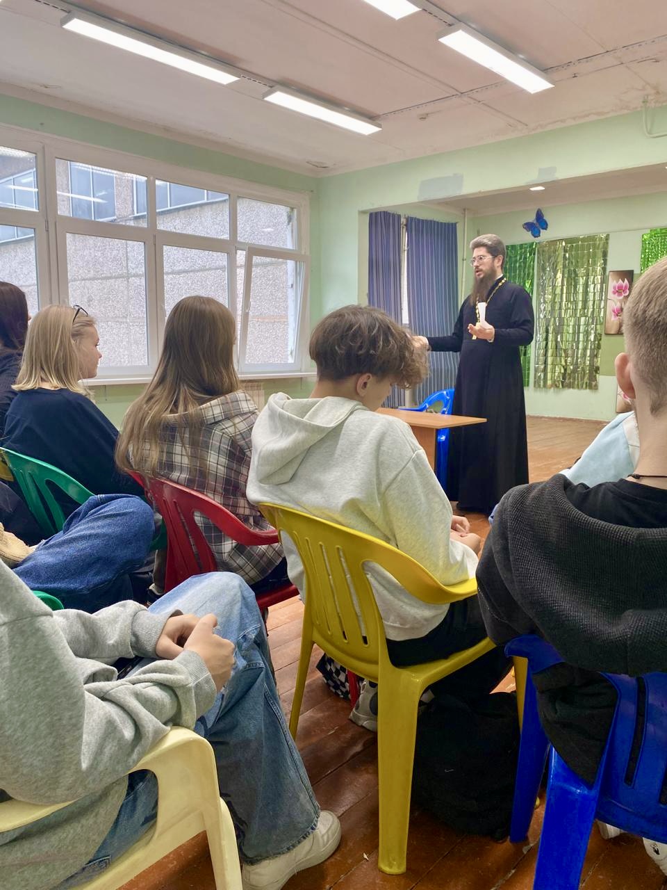 С большим интересом и вниманием ребята слушали и задавали вопросы батюшке. Открытый диалог стал настоящим откровением для обеих сторон. Ребята не стеснялись задавать самые сложные и, порой, провокационные вопросы о смысле жизни, отношениях между людьми, выборе жизненного пути, проблемах современного общества. Старшеклассники искренне и открыто говорили о своих переживаниях; каждый вопрос — это глубокие философские размышления, в которых трудно разобраться молодому неопытному человеку.