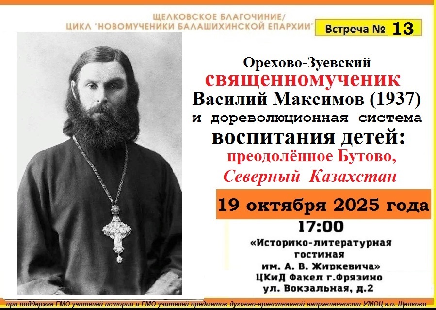 19 октября 2025 года в «Историко-литературной гостиной им. А.В.Жиркевича» ЦКиД Факел г.Фрязино состоялась тринадцатая встреча из цикла «Новомученики Балашихинские: история…