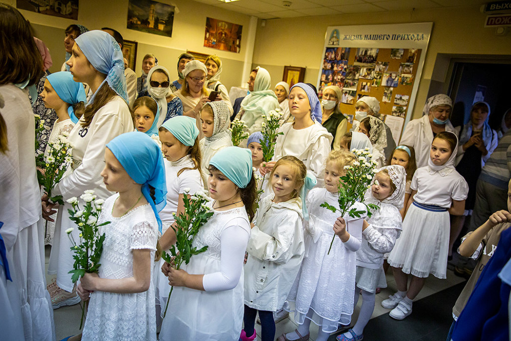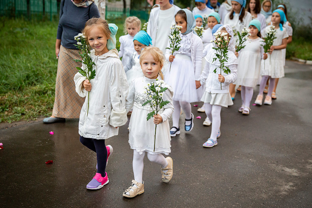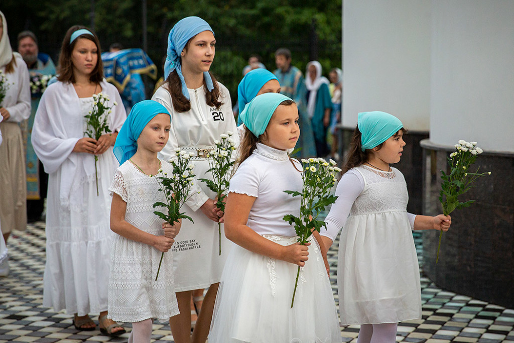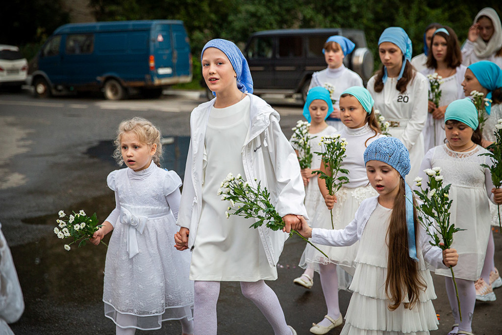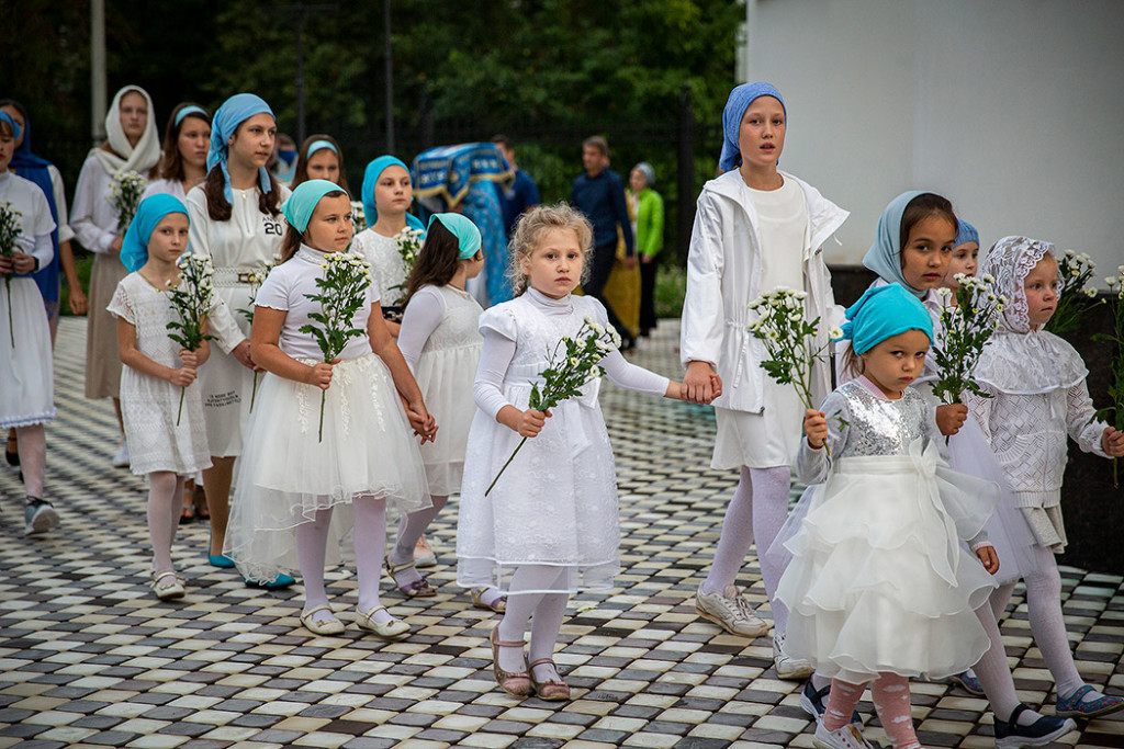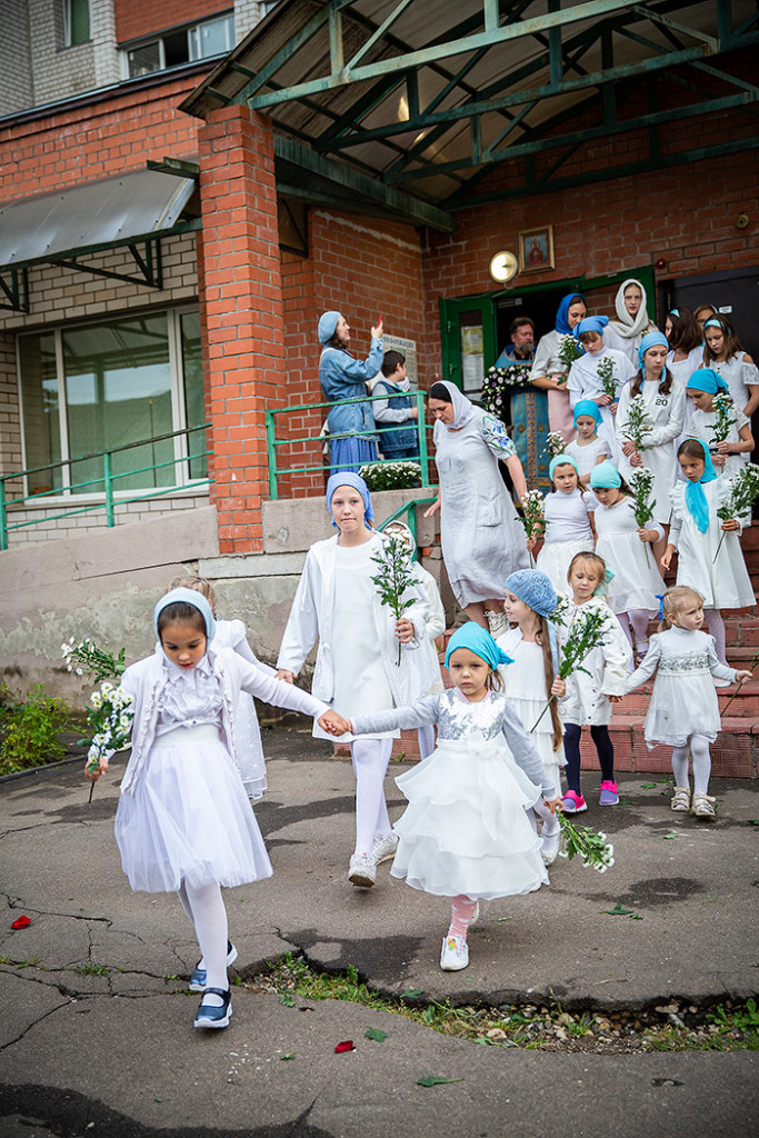 Перед Плащаницей в крестном ходе прошли юные прихожанки и воспитанницы воскресной школы, одетые в белые одежды и с цветами в руках. Участие девочек придало торжественность и трогательность Крестному ходу.