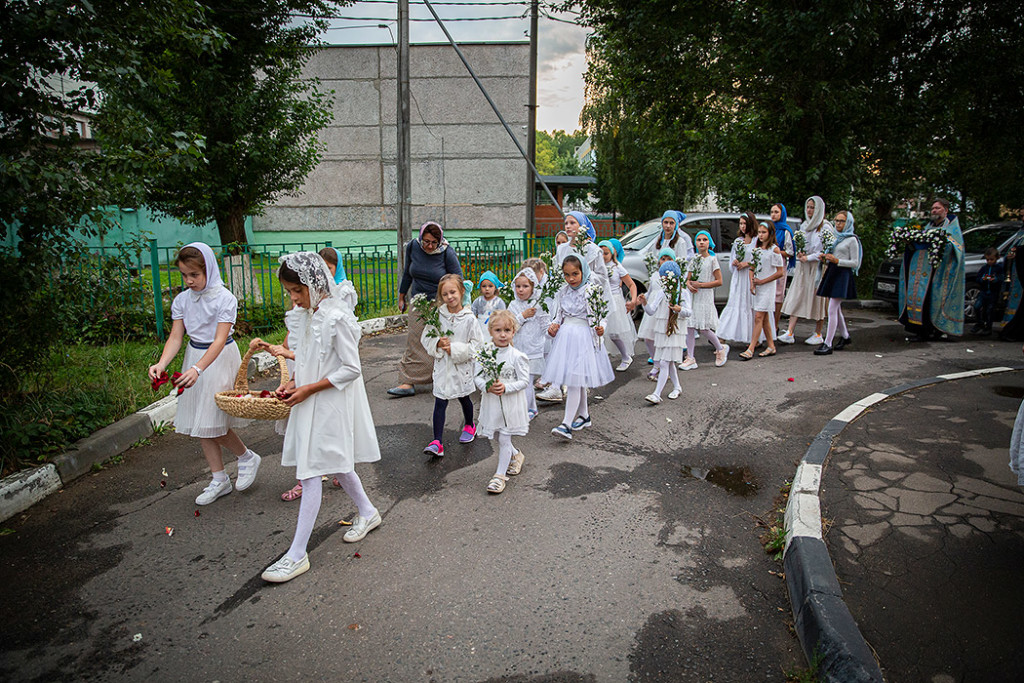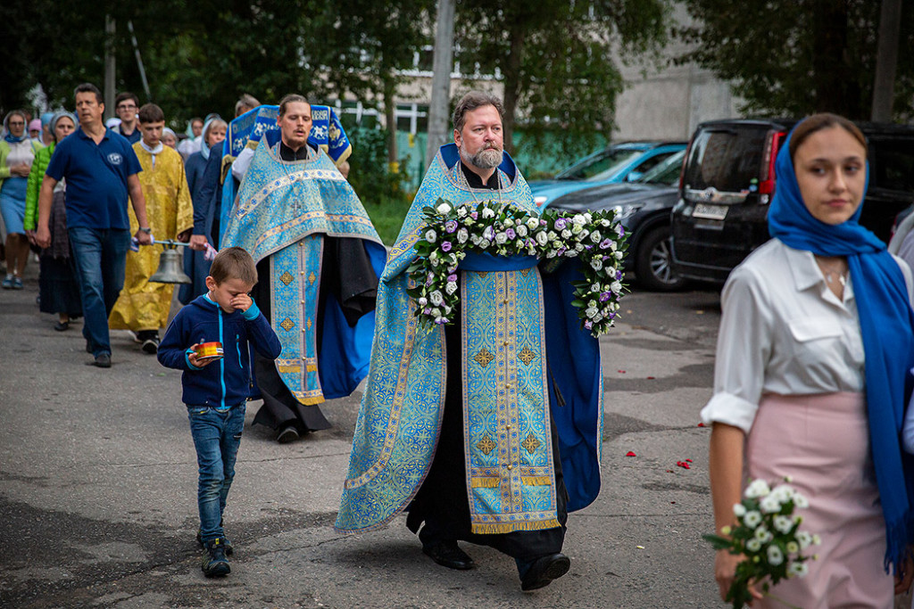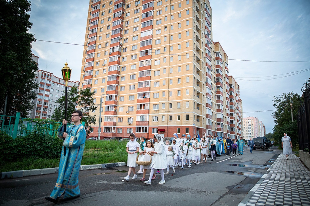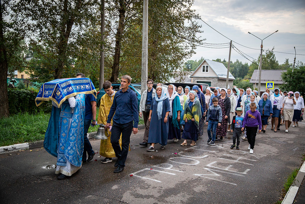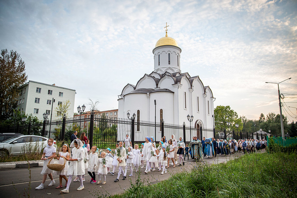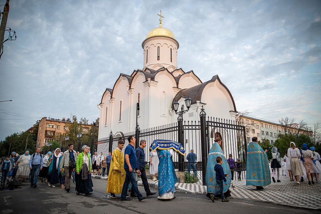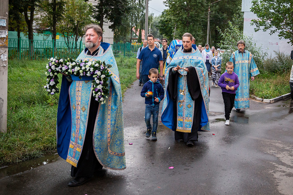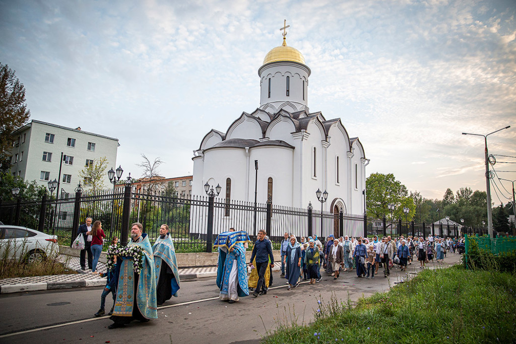 30 августа в Державном храме г.Фрязино было совершено богослужение с чином погребения Пресвятой Богородицы. Несмотря на трудности, связанные со строительством храма, силами прихожан был организован Крестный ход с Плащаницей вокруг строящегося храма.