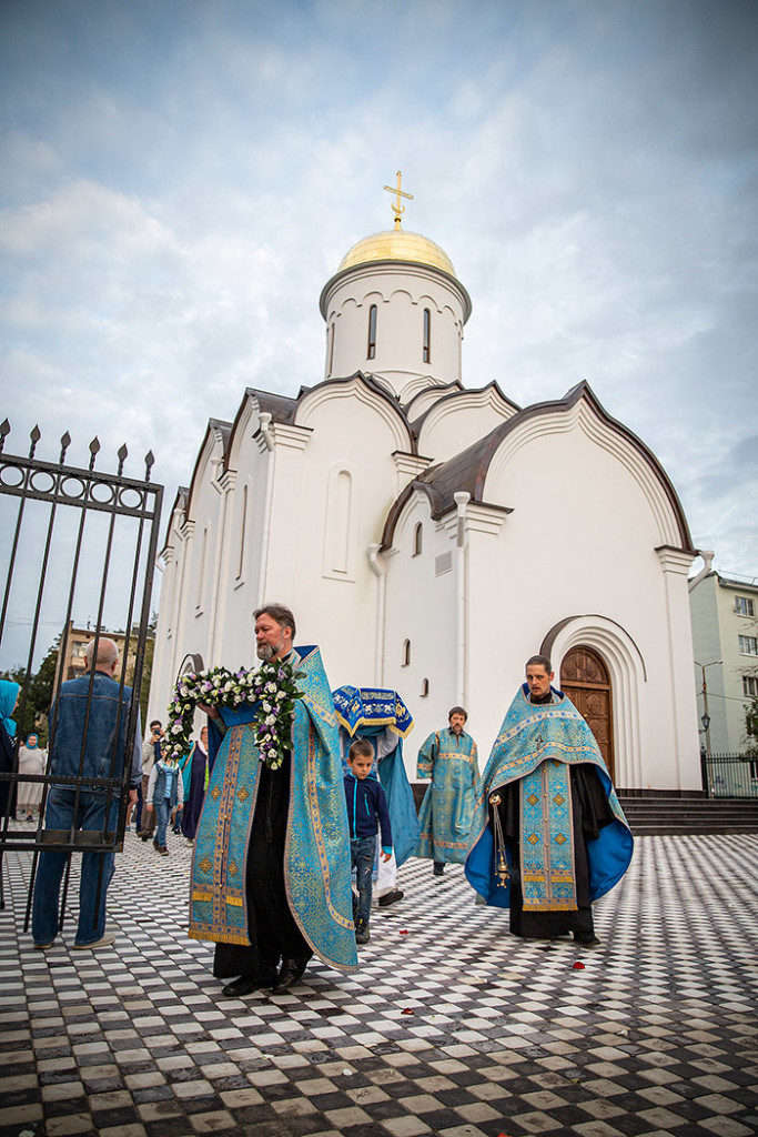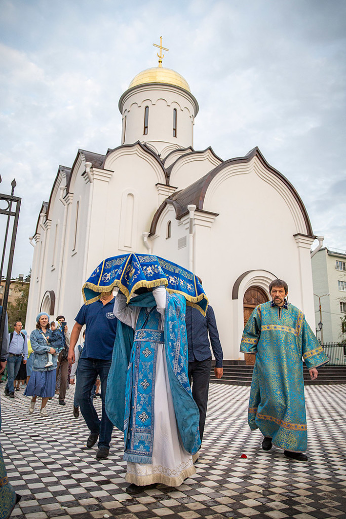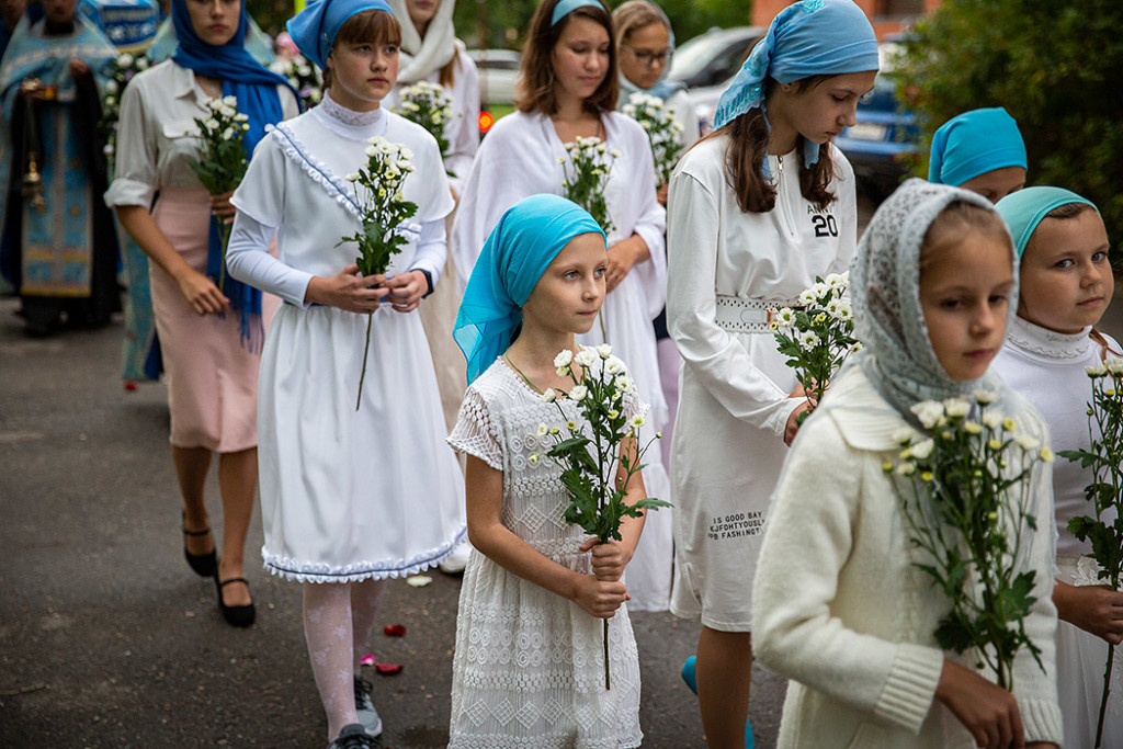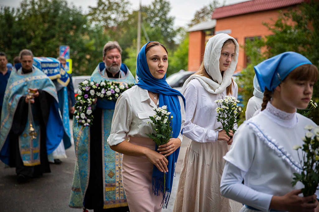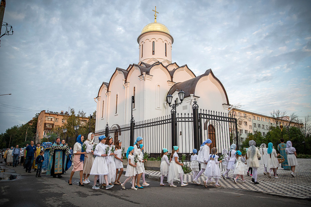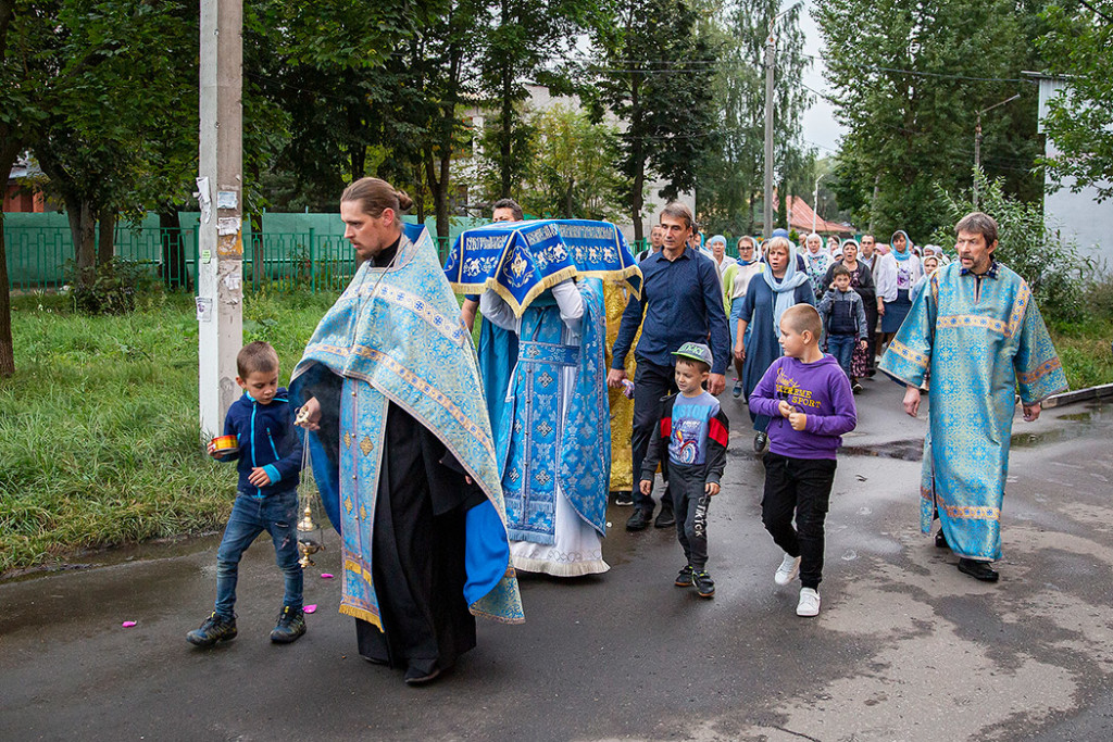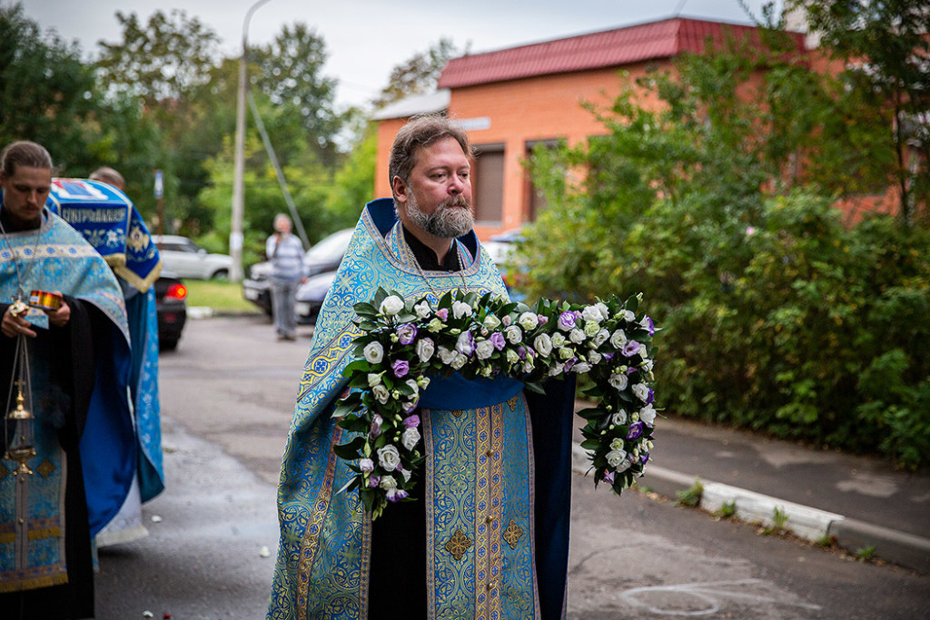 30 августа в Державном храме г.Фрязино было совершено богослужение с чином погребения Пресвятой Богородицы. Несмотря на трудности, связанные со строительством храма, силами прихожан был организован Крестный ход с Плащаницей вокруг строящегося храма.