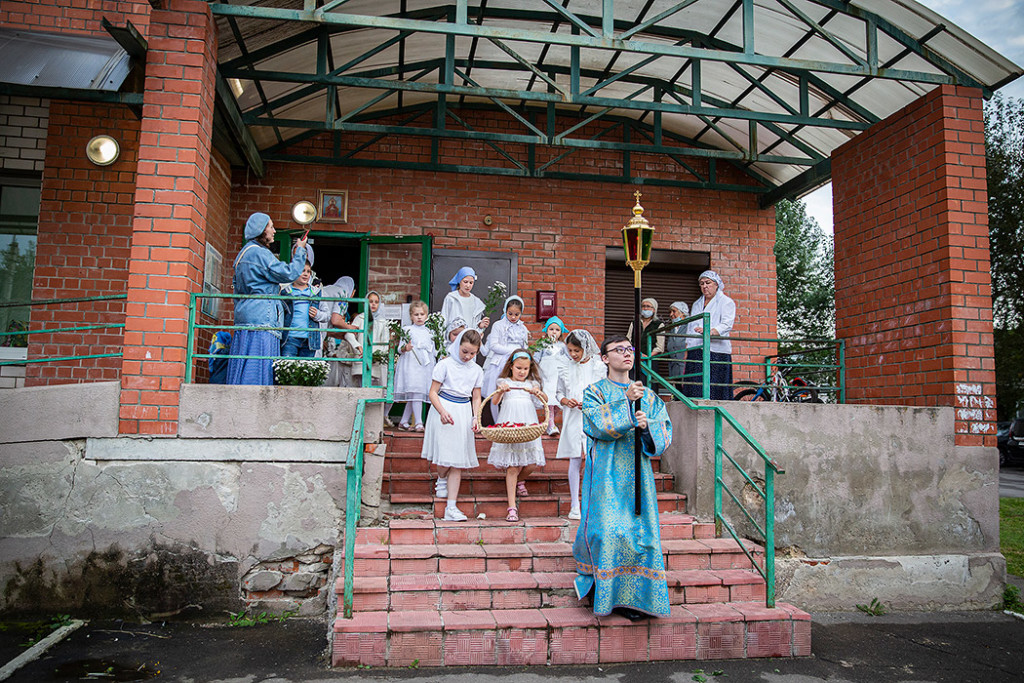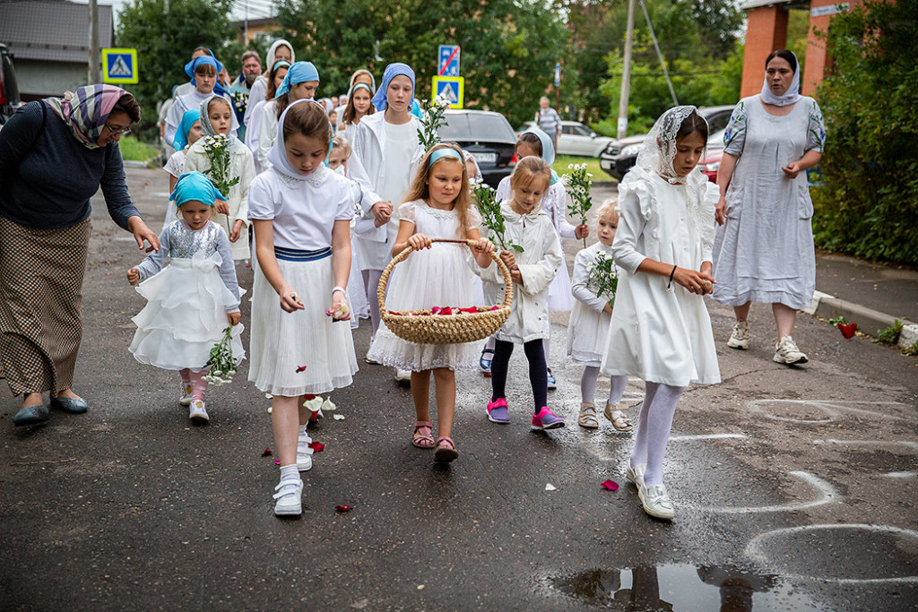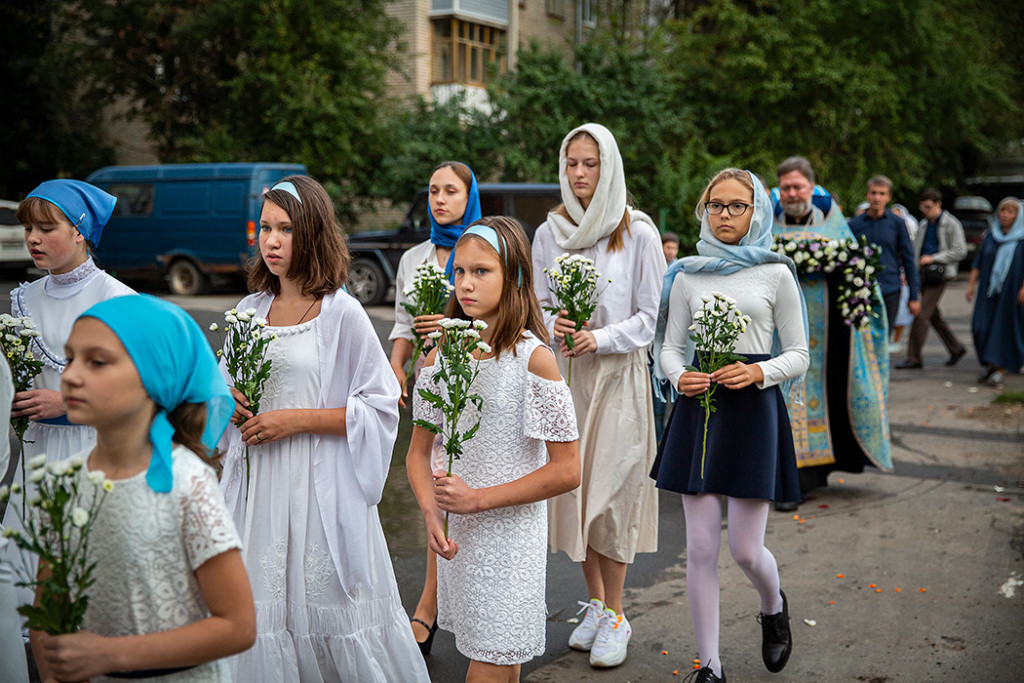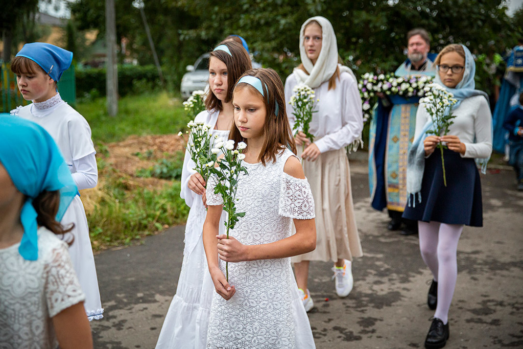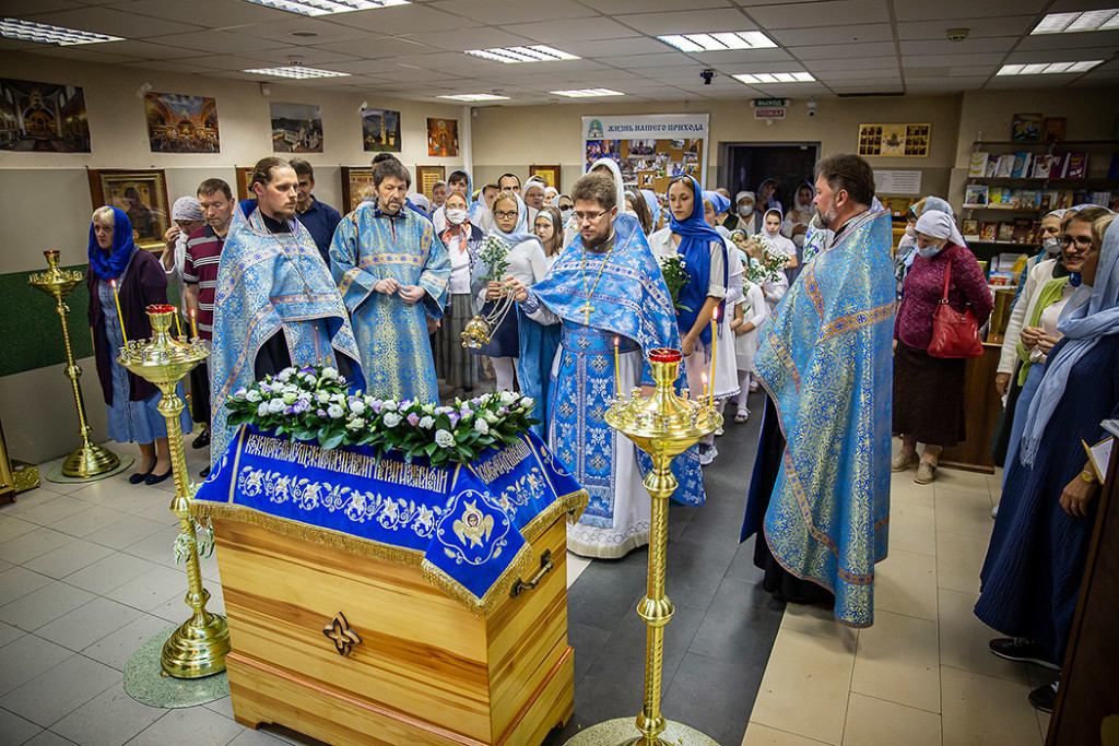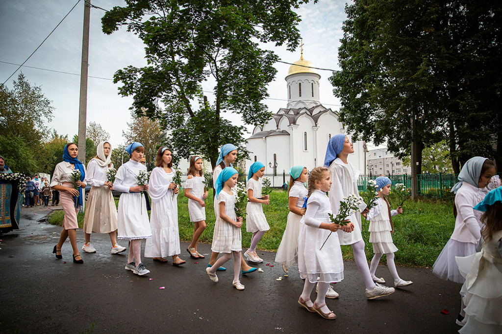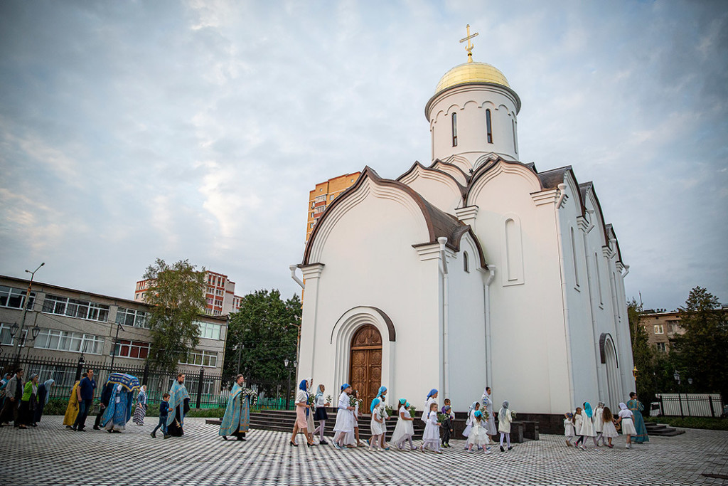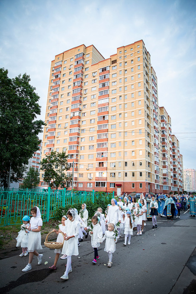30 августа в Державном храме г.Фрязино было совершено богослужение с чином погребения Пресвятой Богородицы. Несмотря на трудности, связанные со строительством храма, силами прихожан был организован Крестный ход с Плащаницей вокруг строящегося храма.