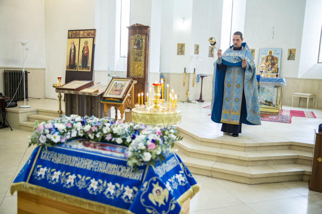 29 августа в храме иконы Божией Матери Державная г. Фрязино было совершено богослужение с чином погребения Пресвятой Богородицы.