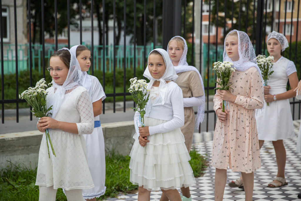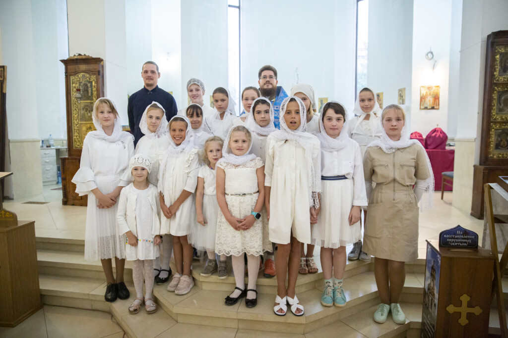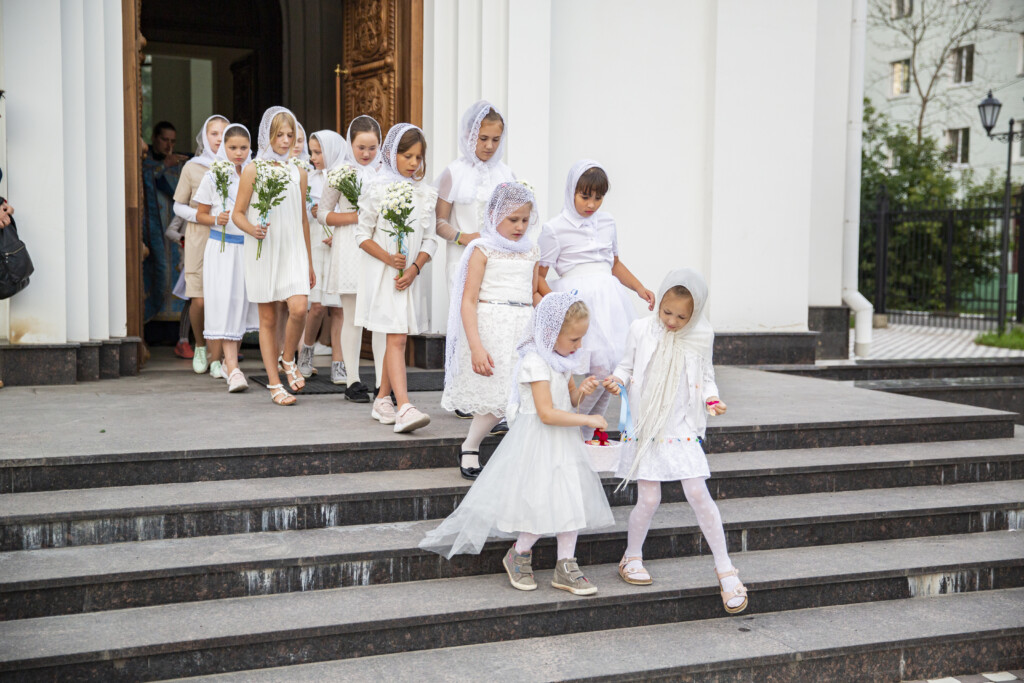 Перед Плащаницей в Крестном ходе прошли юные прихожанки и воспитанницы воскресной школы, одетые в белые одежды и с цветами в руках. Участие девочек придало торжественность и трогательность Крестному ходу.