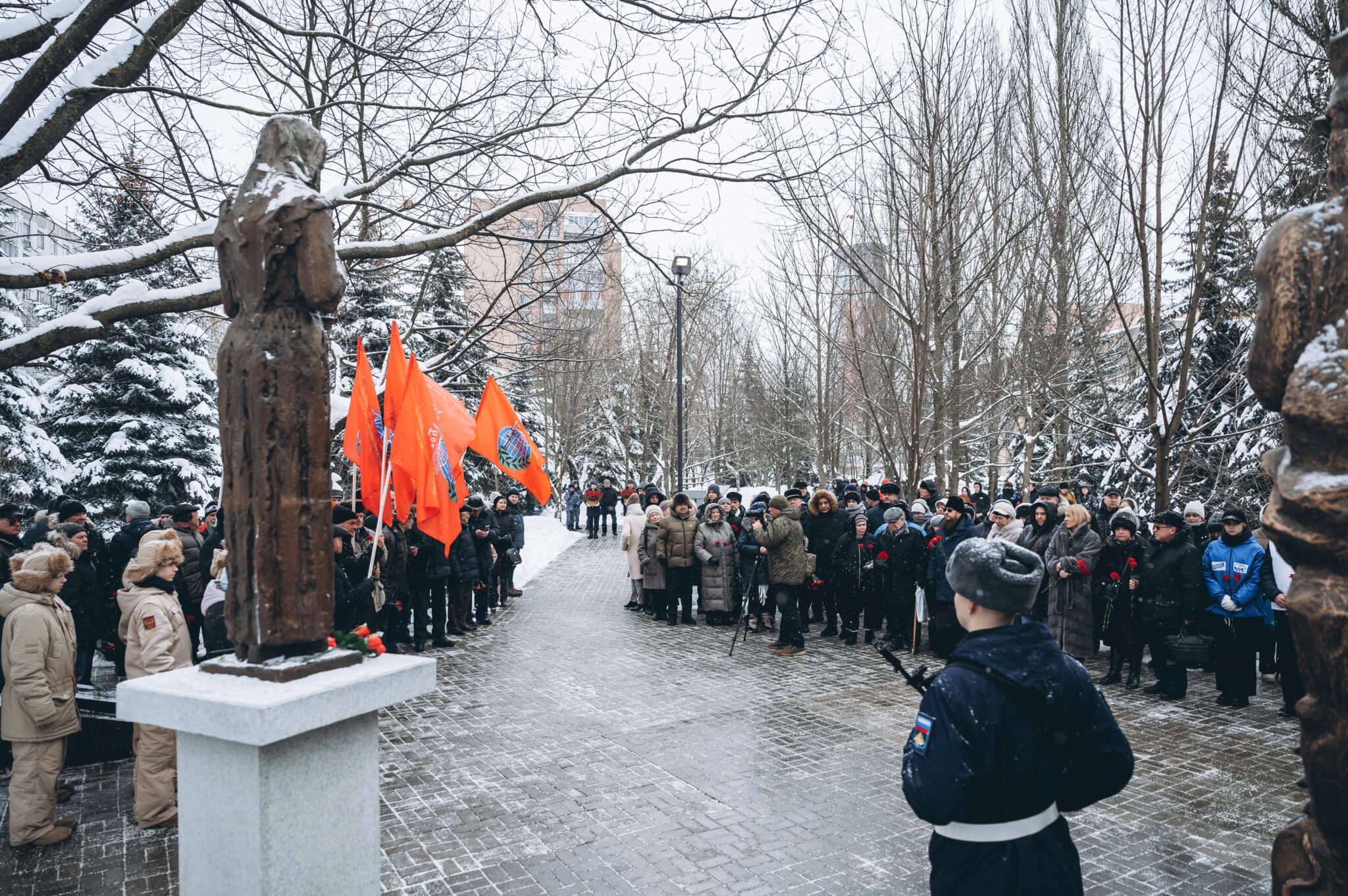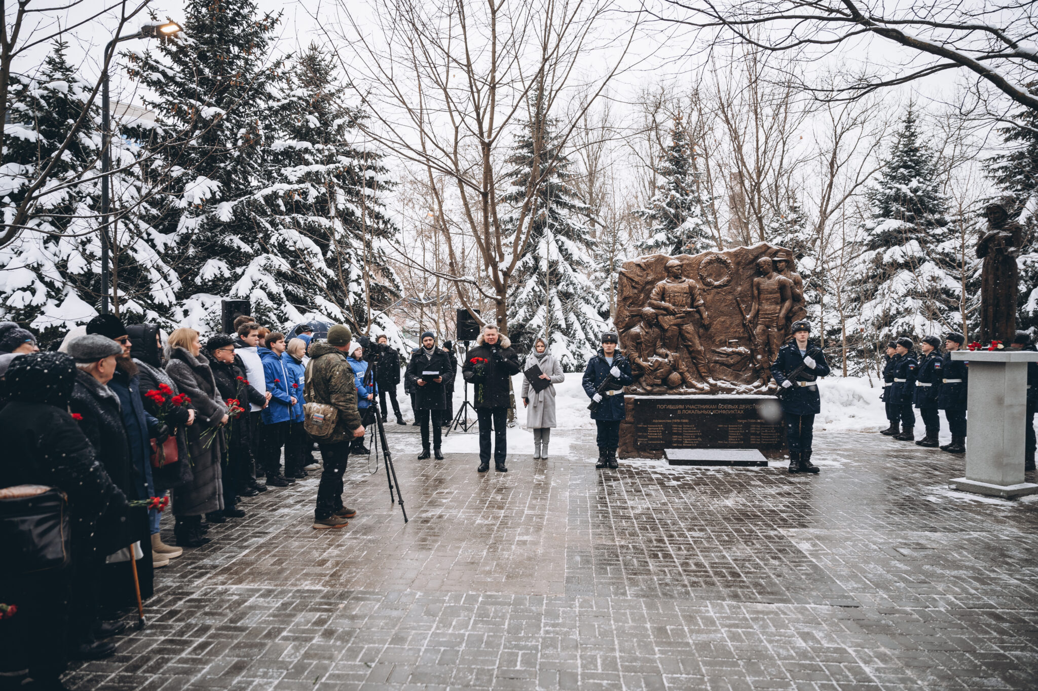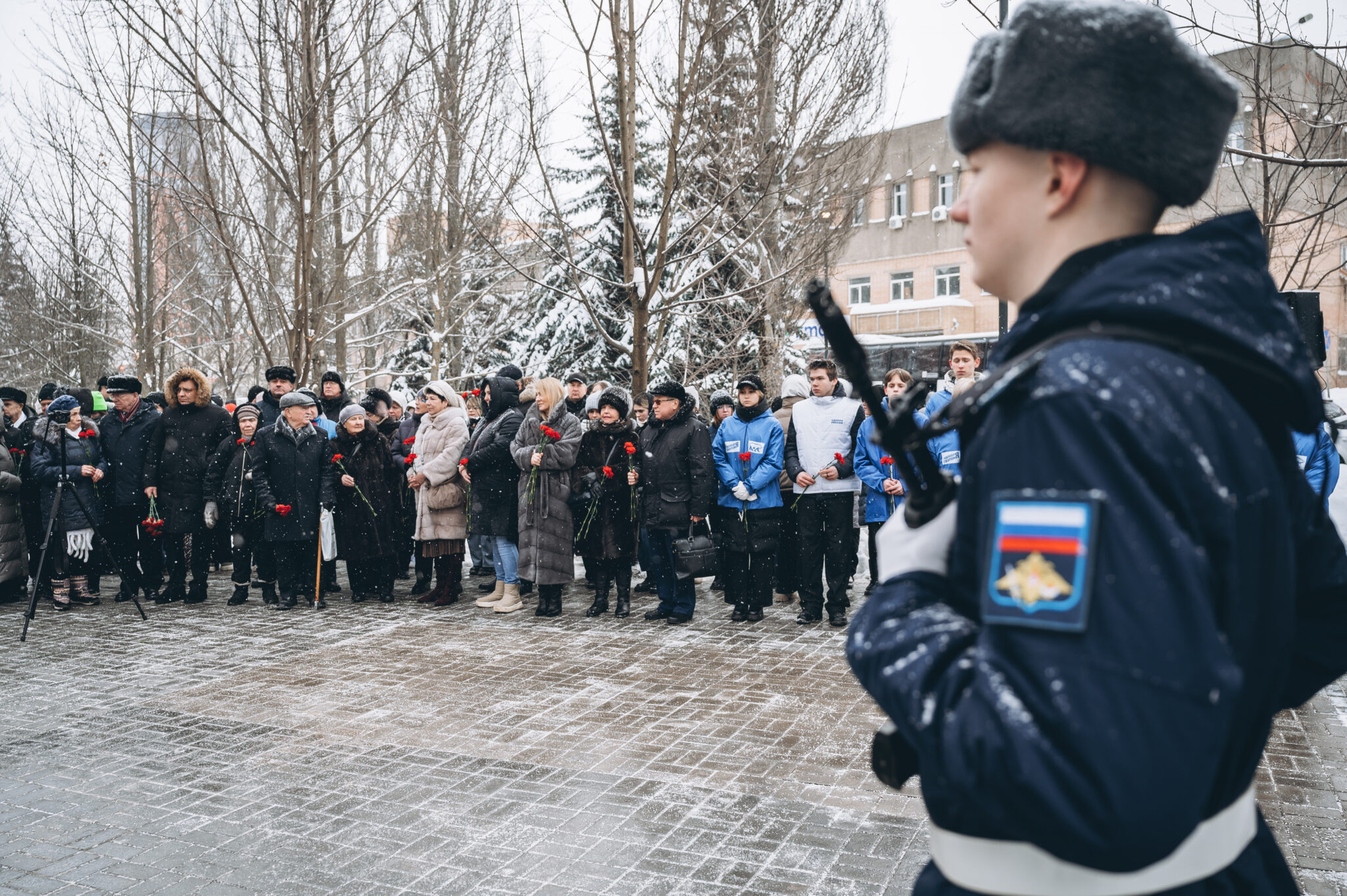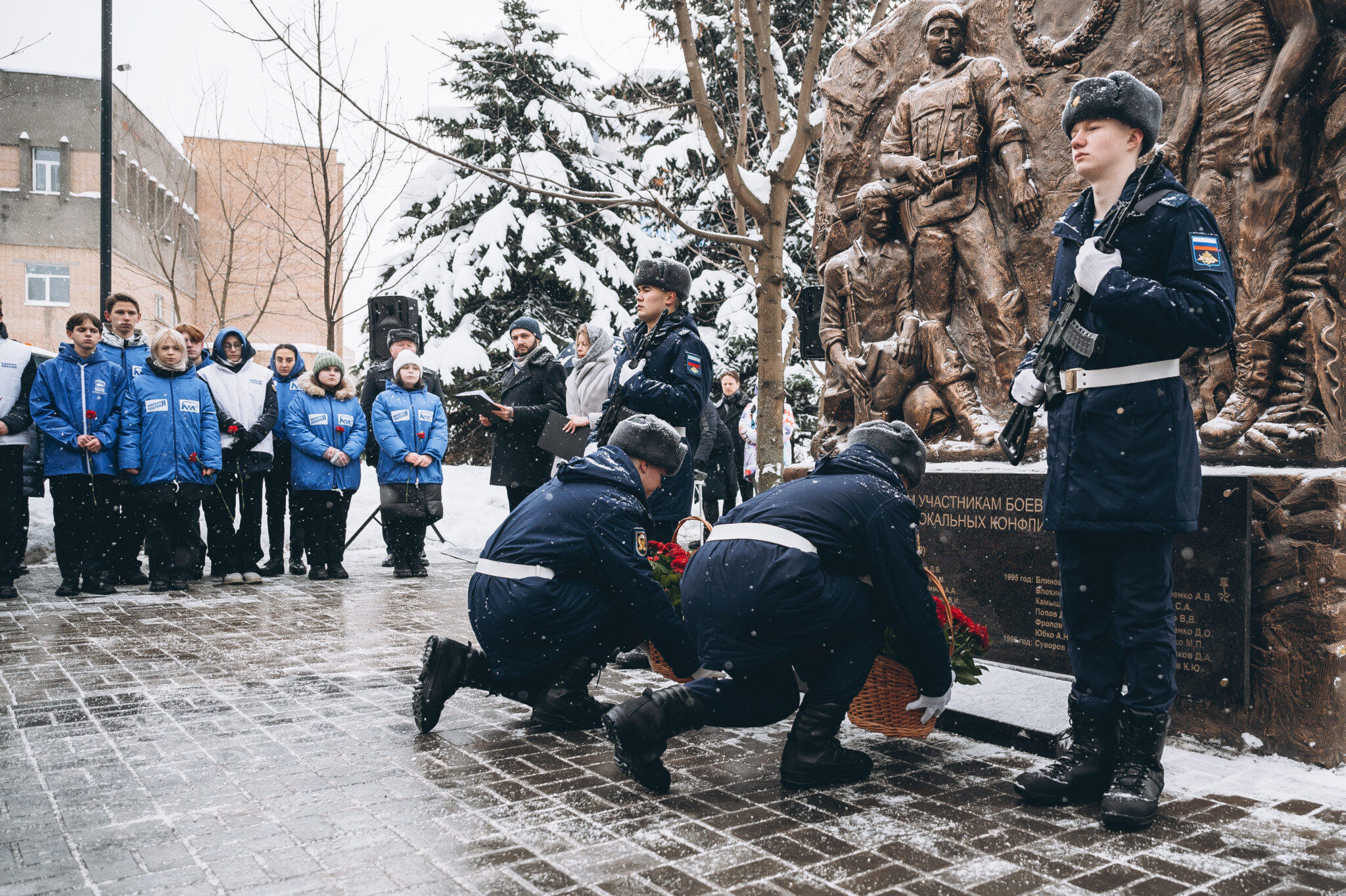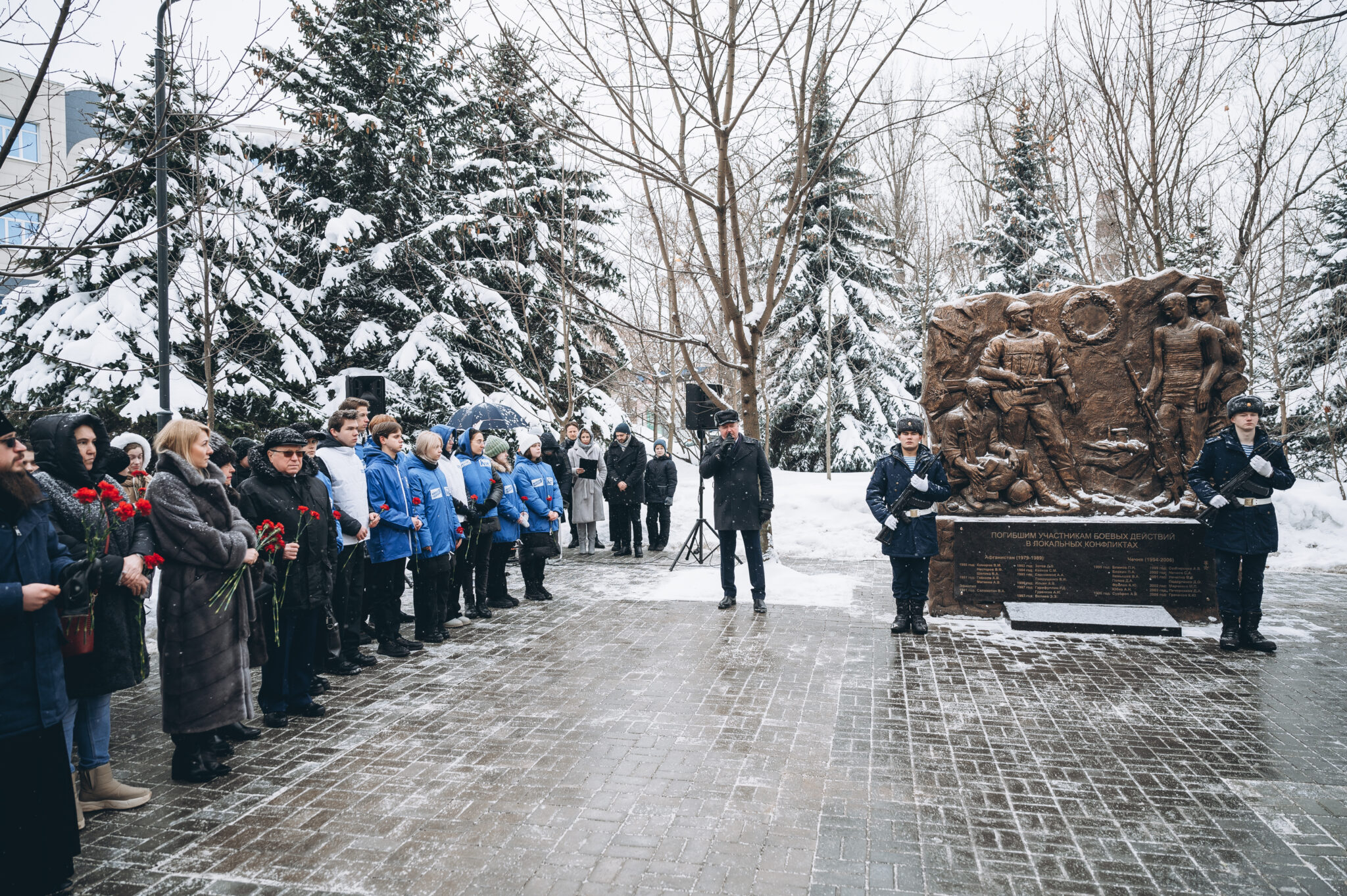 28 щёлковских ребят не вернулись с той войны, не сказали: «Мама, я живой». К их именам на гранитной плите памятника «Погибшим участникам боевых действий в локальных конфликтах» возложили цветы. В этом году красные гвоздики легли и к подножию памятника «Скорбящая мать», который установили в сквере рядом с мемориалом.