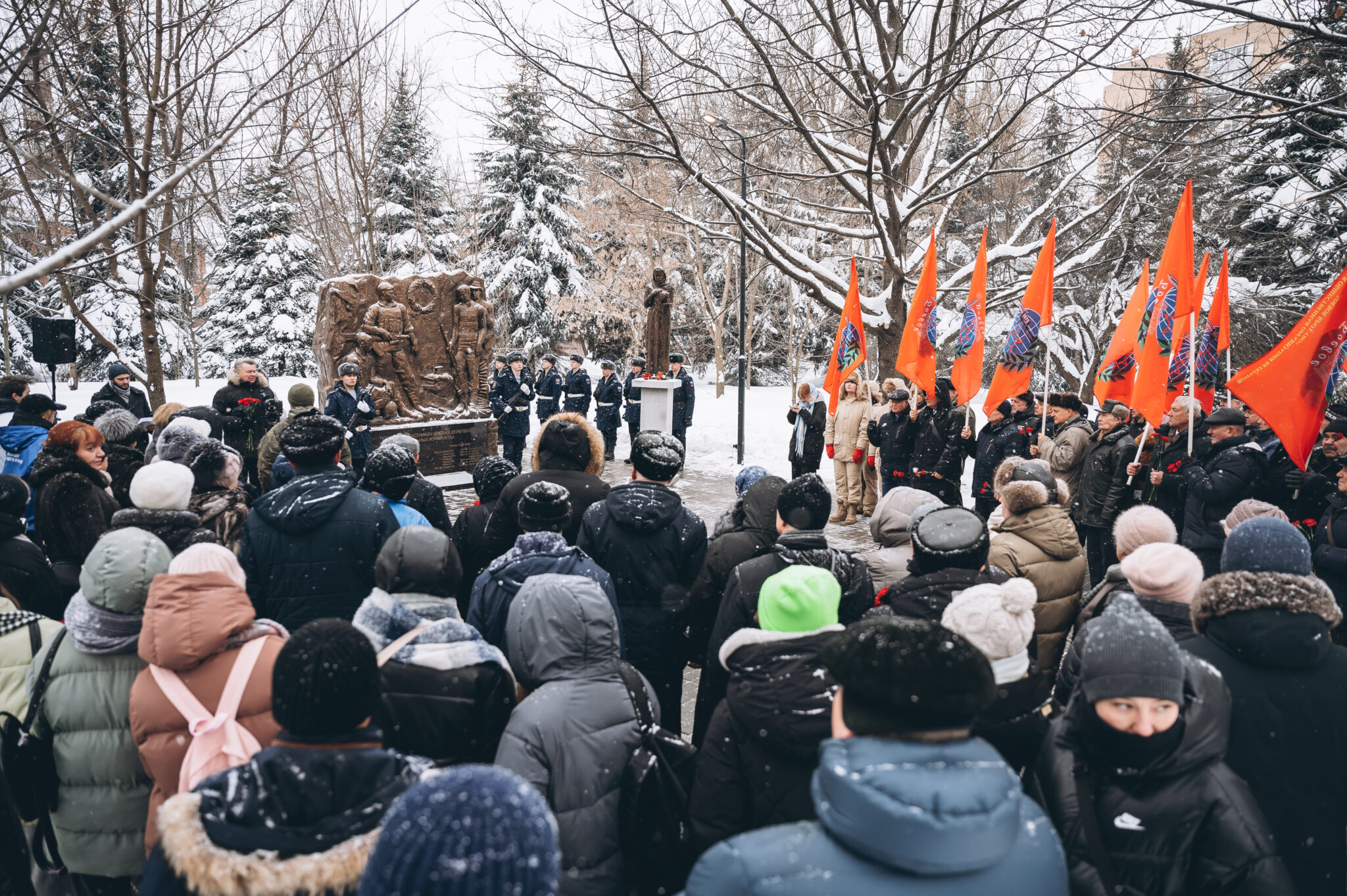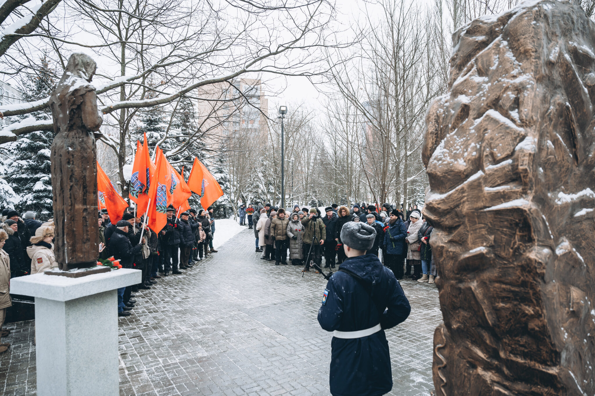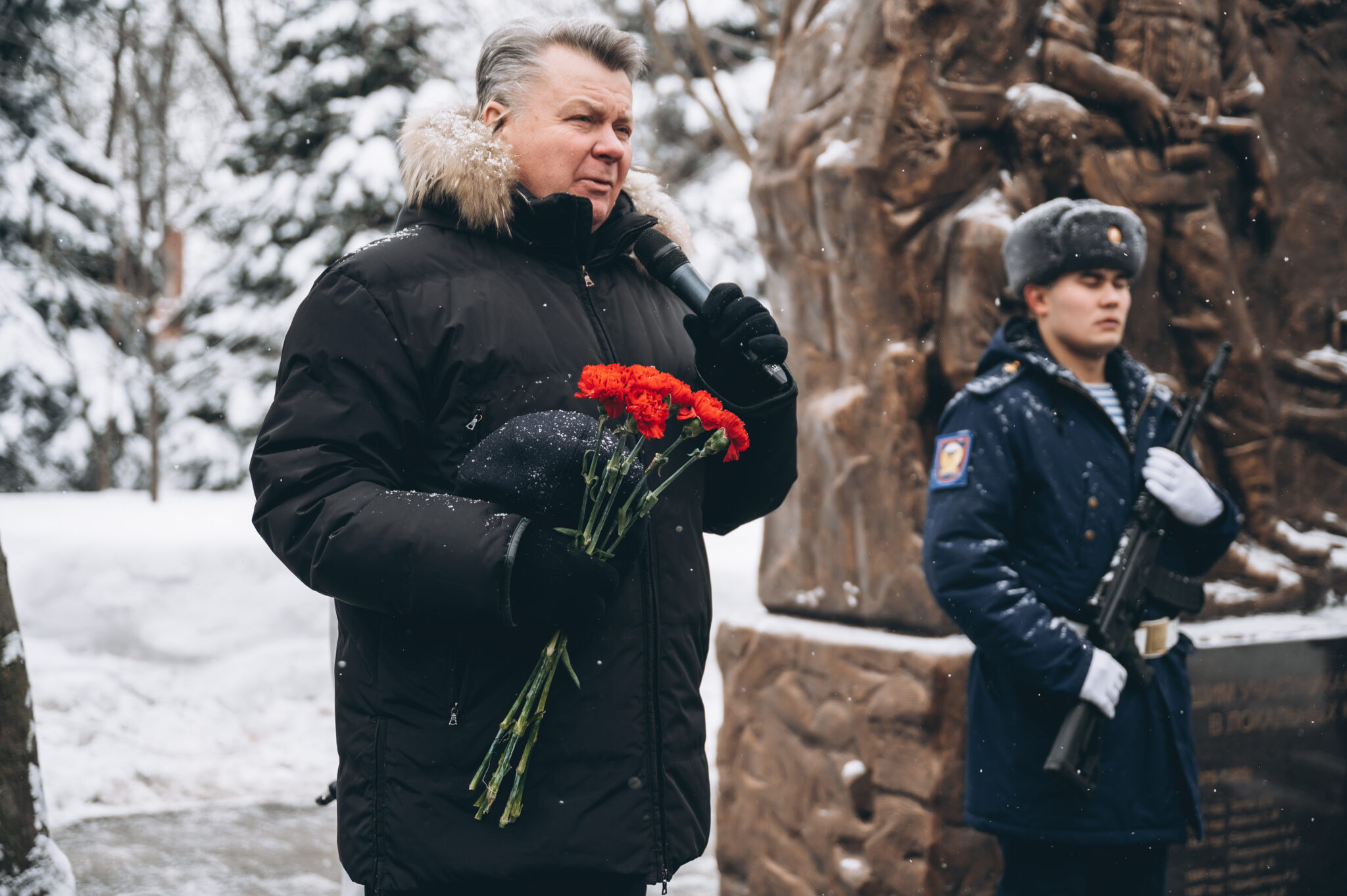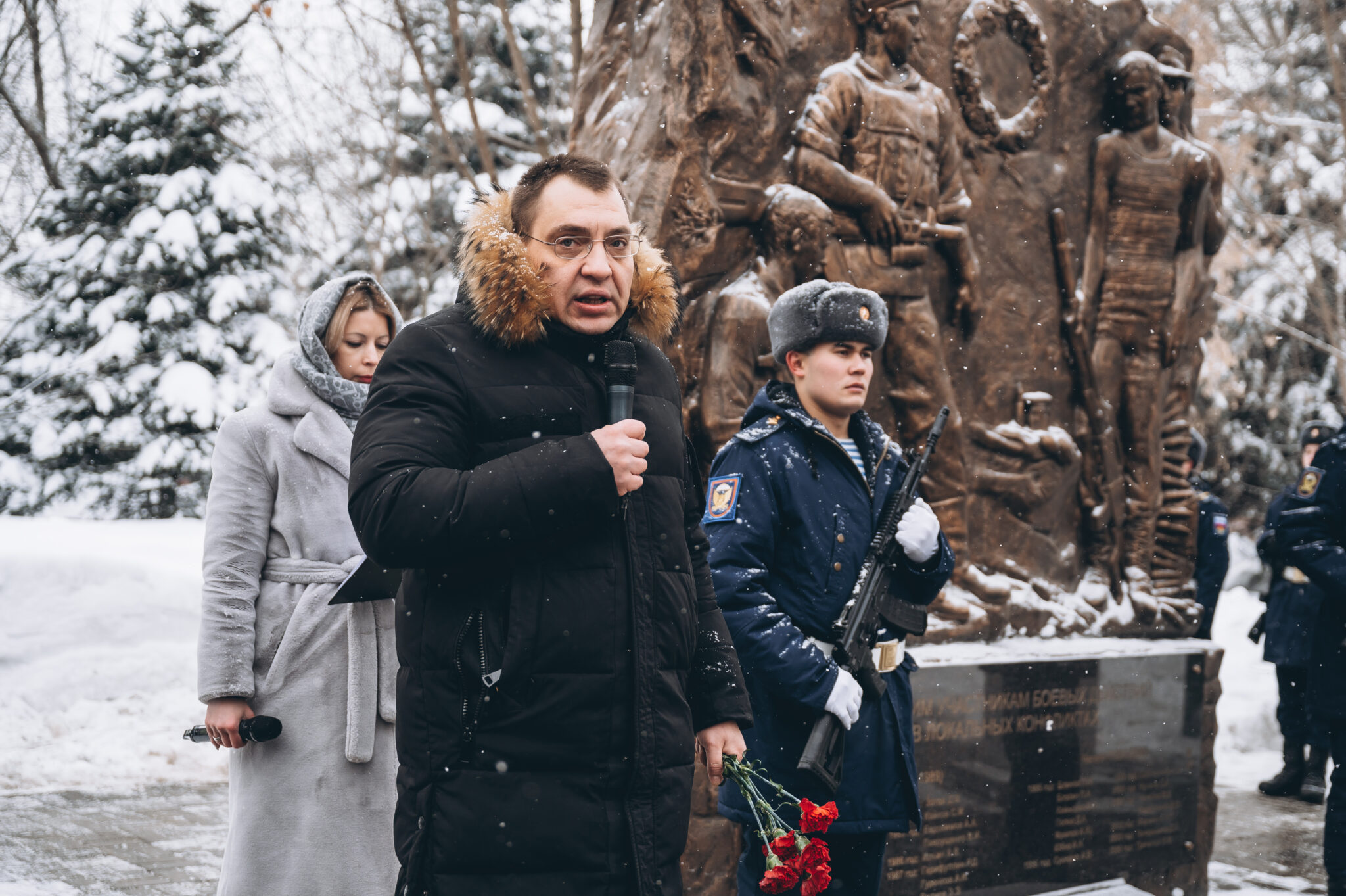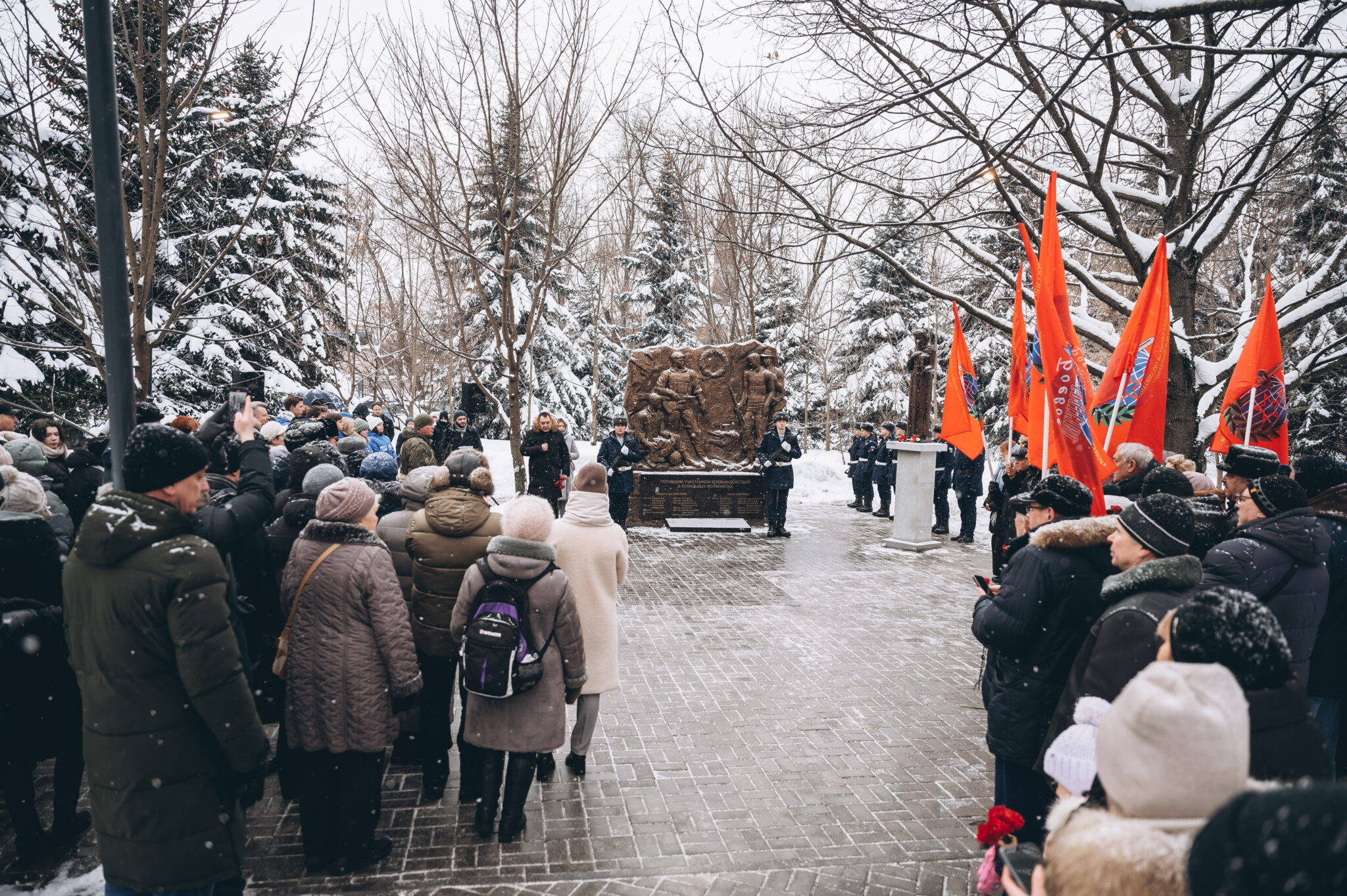 28 щёлковских ребят не вернулись с той войны, не сказали: «Мама, я живой». К их именам на гранитной плите памятника «Погибшим участникам боевых действий в локальных конфликтах» возложили цветы. В этом году красные гвоздики легли и к подножию памятника «Скорбящая мать», который установили в сквере рядом с мемориалом.