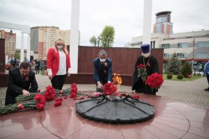 В торжественной церемонии возложения цветов к Вечному огню в мемориальном комплексе «Аллея памяти» приняли участие временно исполняющий полномочия главы городского округа Щёлково Андрей Булгаков и депутаты Совета депутатов муниципалитета.