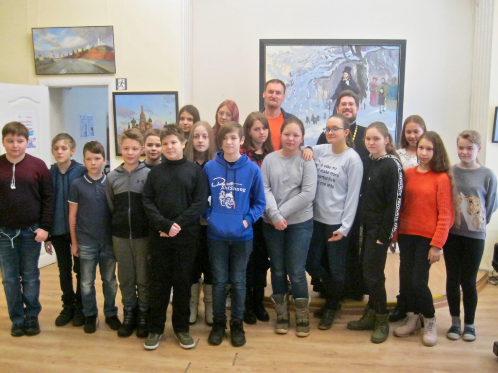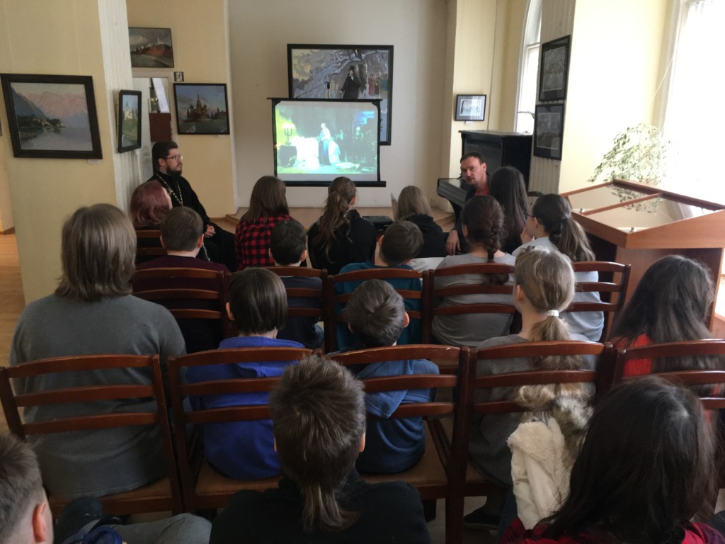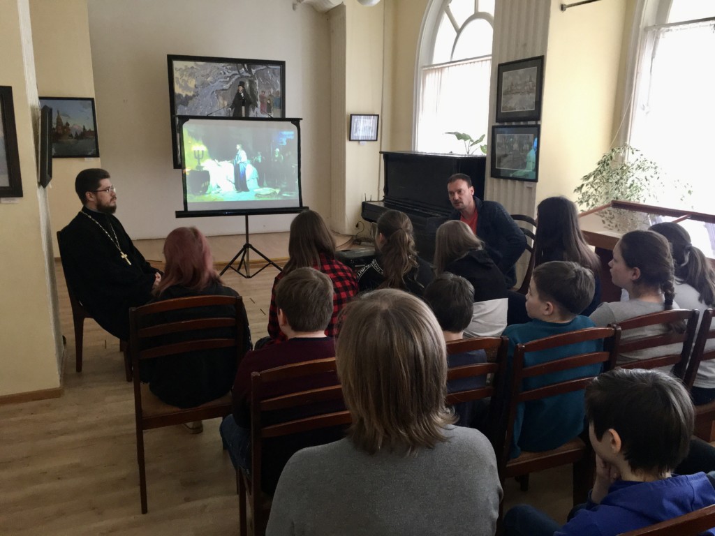 14 февраля в Культурном центре г. Фрязино в рамках Дня православной молодежи состоялась встреча учащихся 6-го класса школы №1 с художником Юрием Кушевским и настоятелем Державного храма г. Фрязино священником Димитрием Третьяковым.