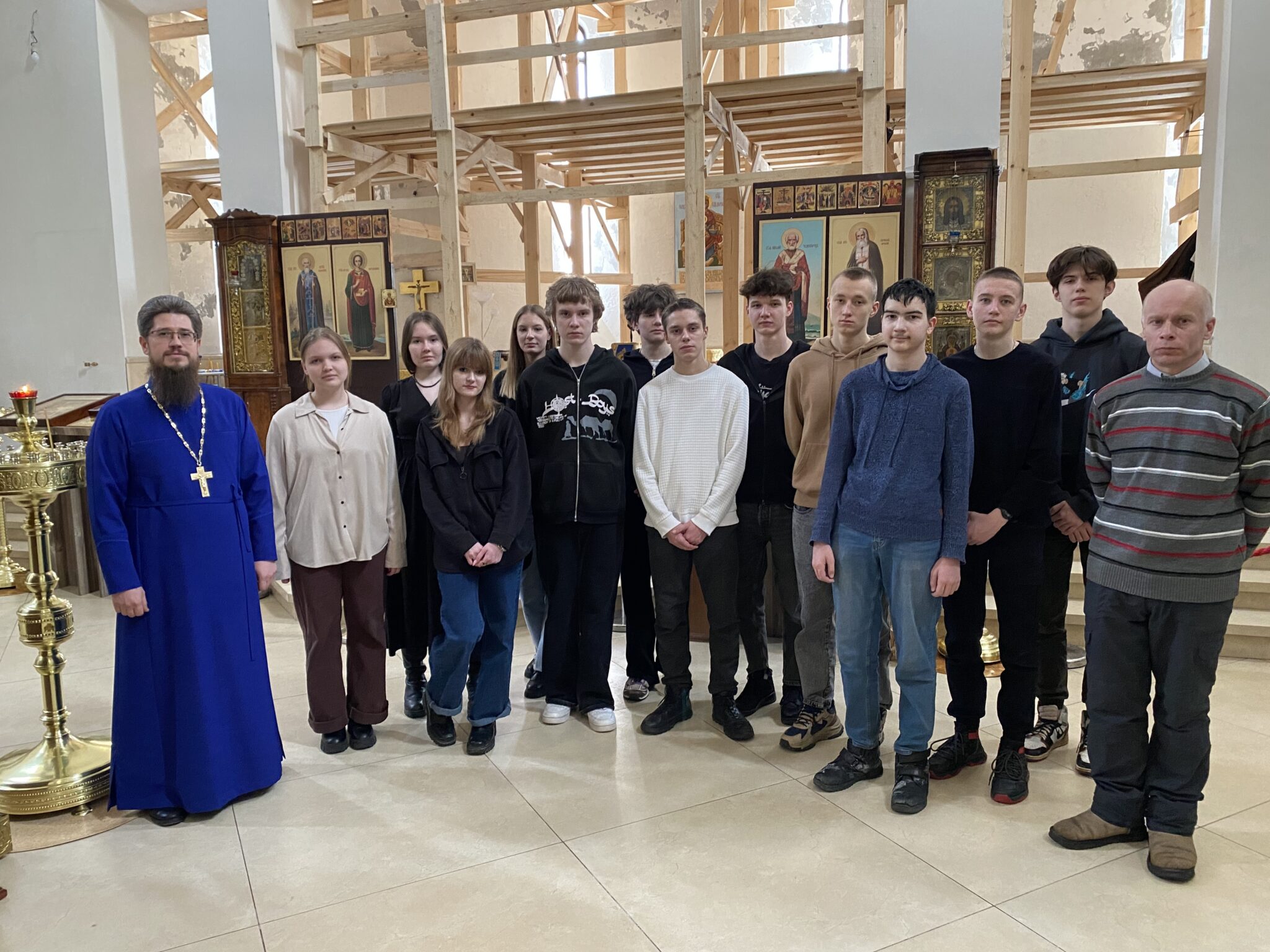 Отец Дмитрий рассказал ребятам историю возникновения храма и показал храм изнутри, где продолжаются отделочные работы, но уже давно совершаются богослужения.