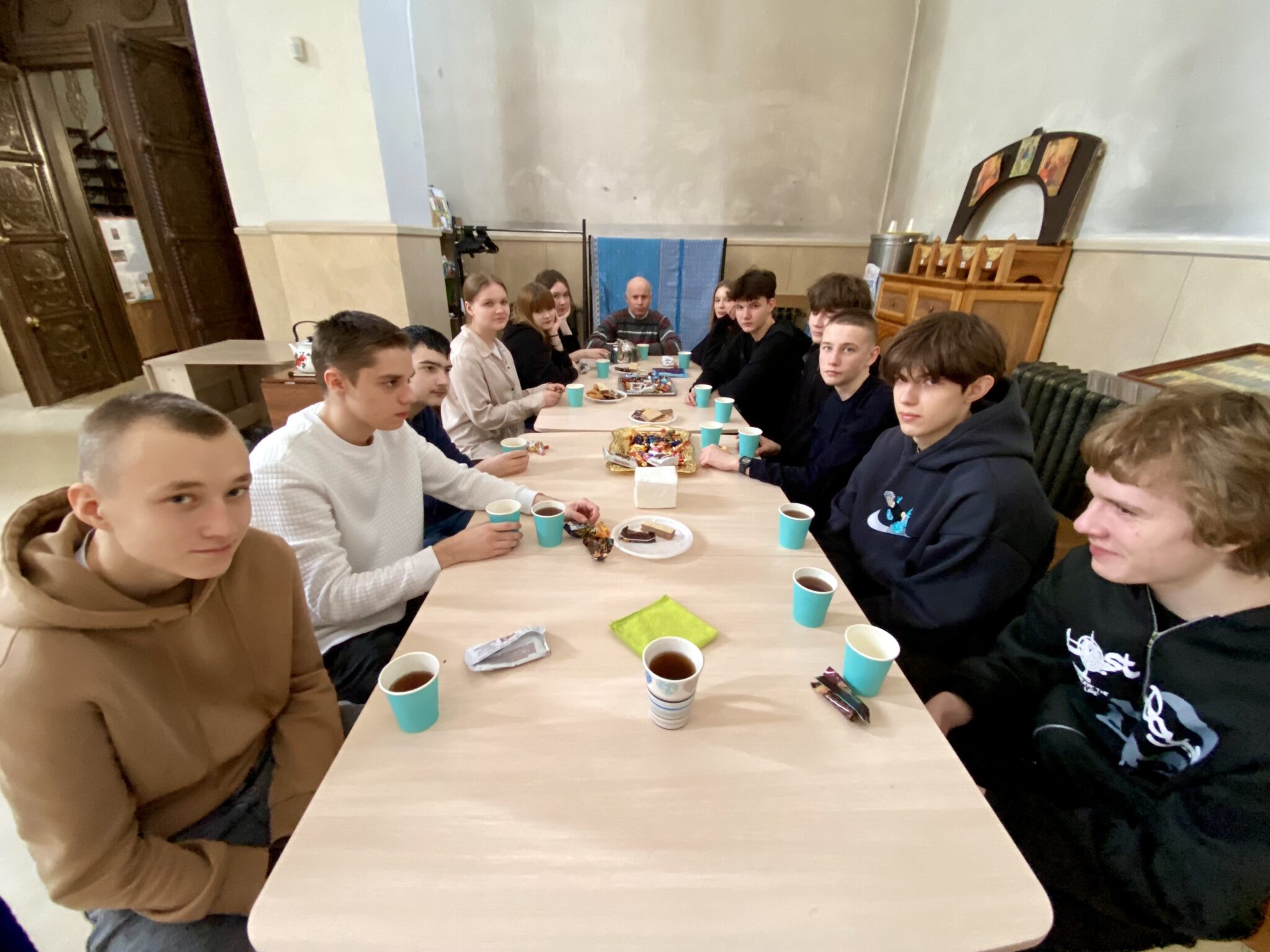 Затем в уголке храма состоялась душевная беседа за чашкой чая, где отец Димитрий рассказал о празднике Сретения Господня, о важности встречи каждого человека с Богом. В последующем разговоре была затронута тема празднования Дня святого Валентина и тема христианской любви и семьи.