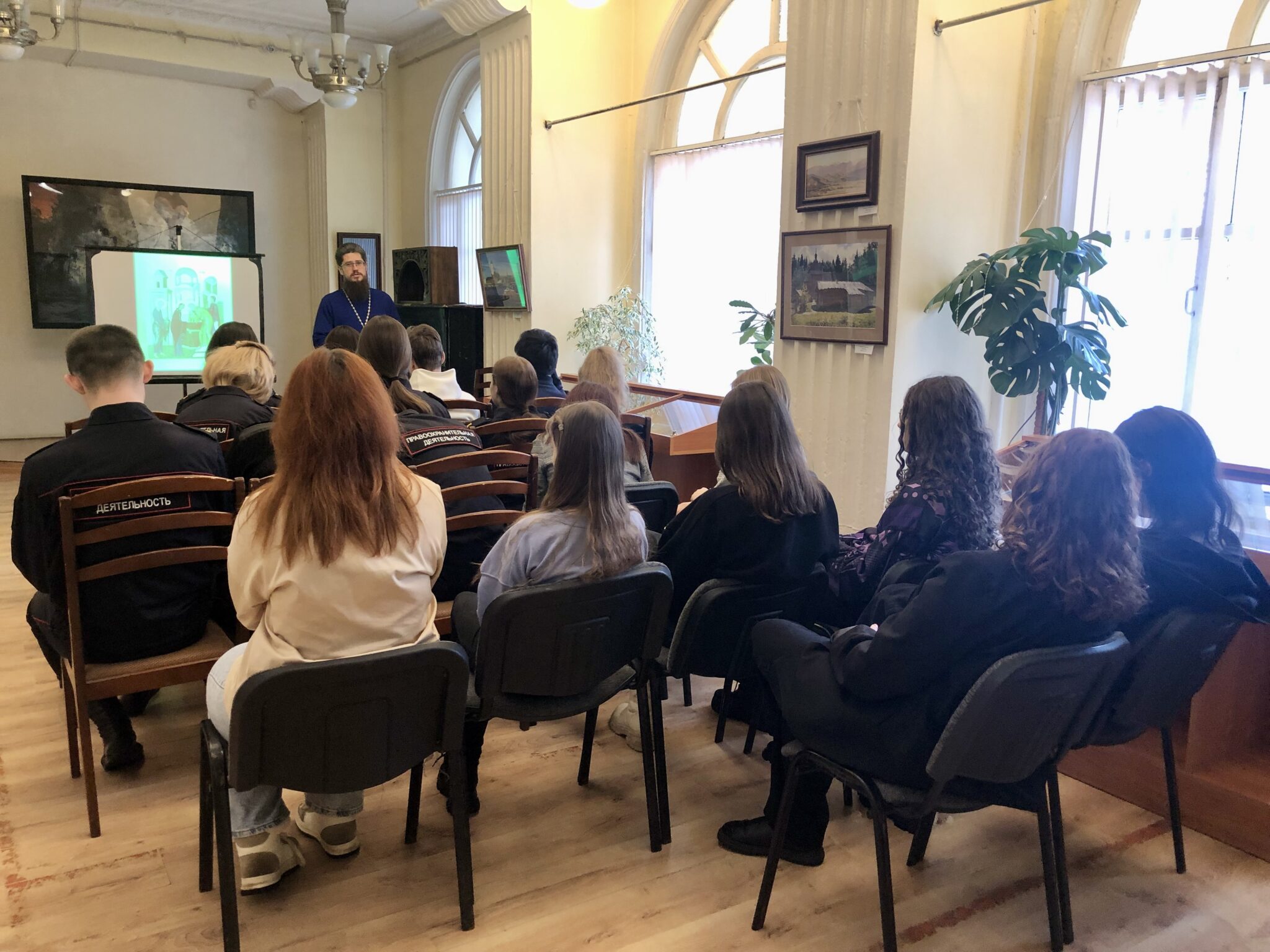 15 февраля 2024 года в Культурном центре г. Фрязино также в рамках празднования Дня православной молодежи состоялась встреча студентов структурного подразделения №2 Щёлковского колледжа со священником Дмитрием Третьяковым, настоятелем храма иконы Божией Матери Державная г. Фрязино.
