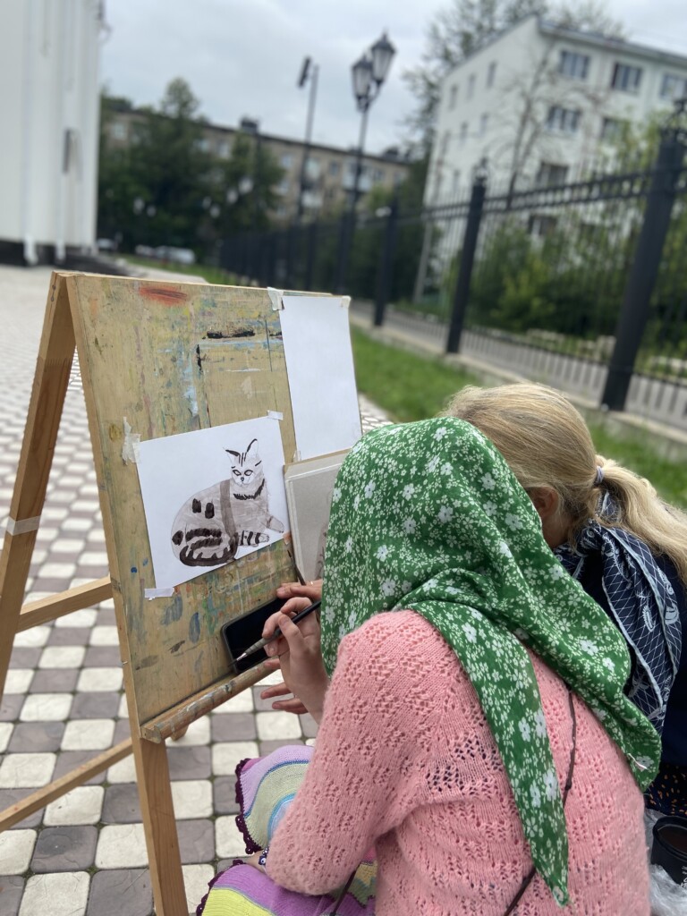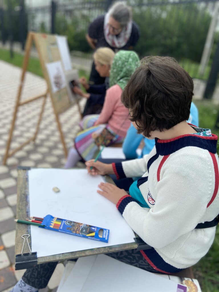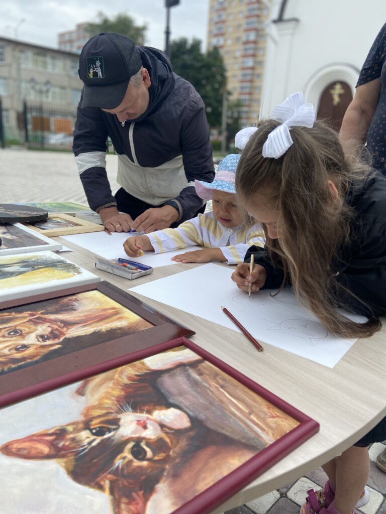 Дети вместе с художниками Евгением Богатовым, Еленой Носиковой, Светланой Букиной, Вероникой Исайчевой с удовольствием рисовали храм, деревья, птиц, всё, что дорого сердцу и приятно глазу.
