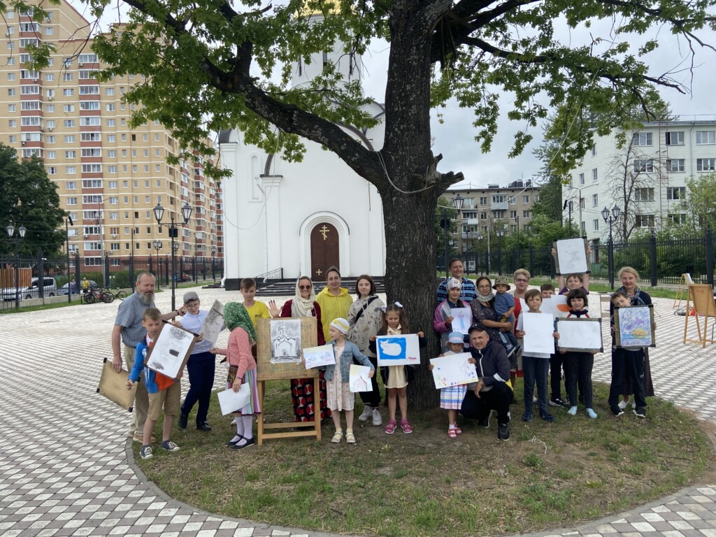 8 июля 2023 г. на территории храма иконы Божией Матери Державная состоялся пленэр, посвящённый празднику День семьи, любви и верности. Организаторами мероприятия выступили Культурный центр, Клуб фрязинских художников и Державный храм. Участники пленера – юные фрязинцы и художники города.