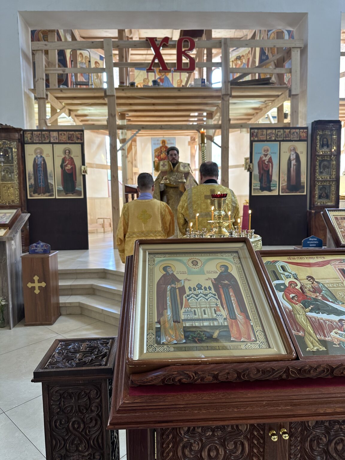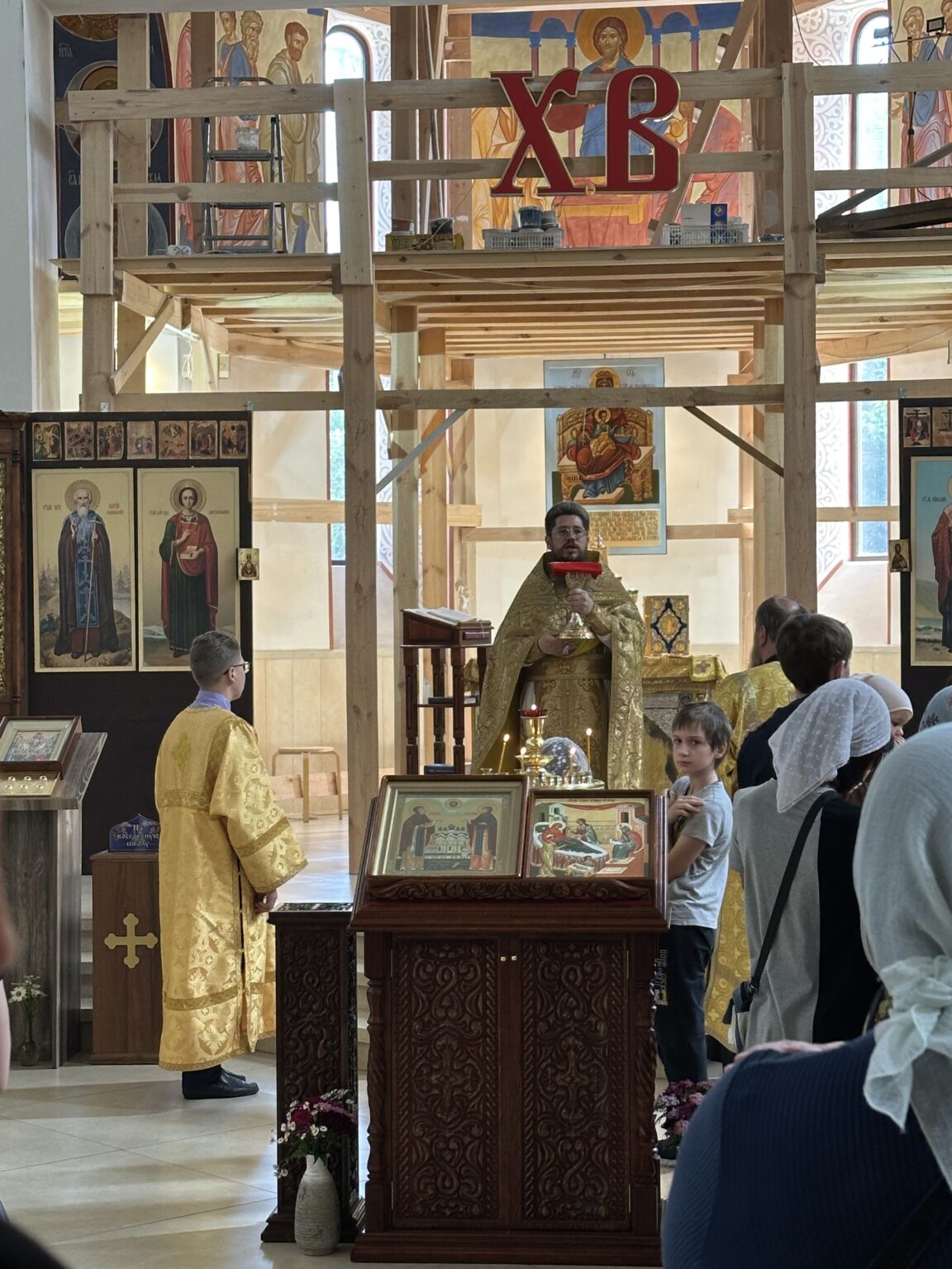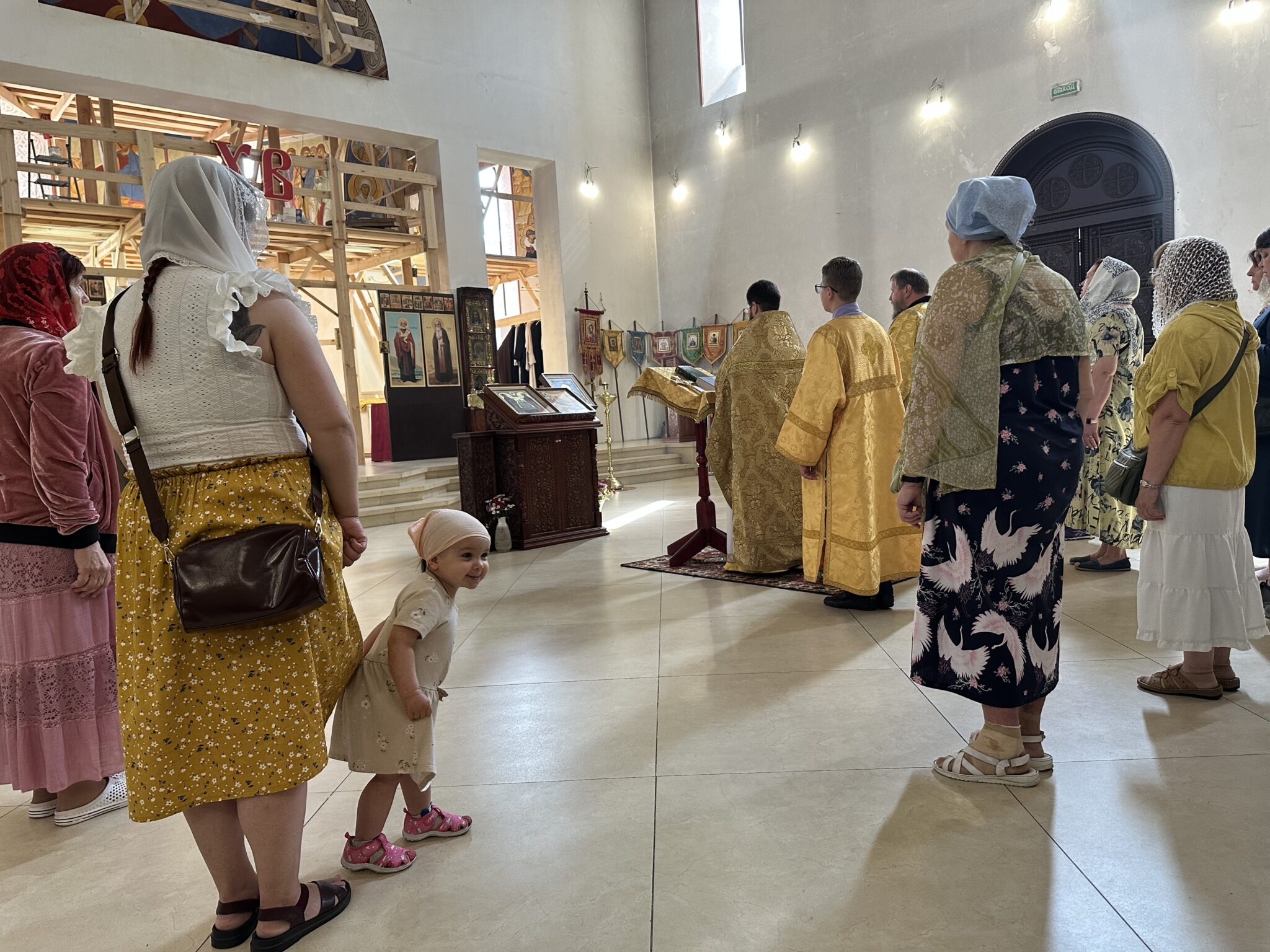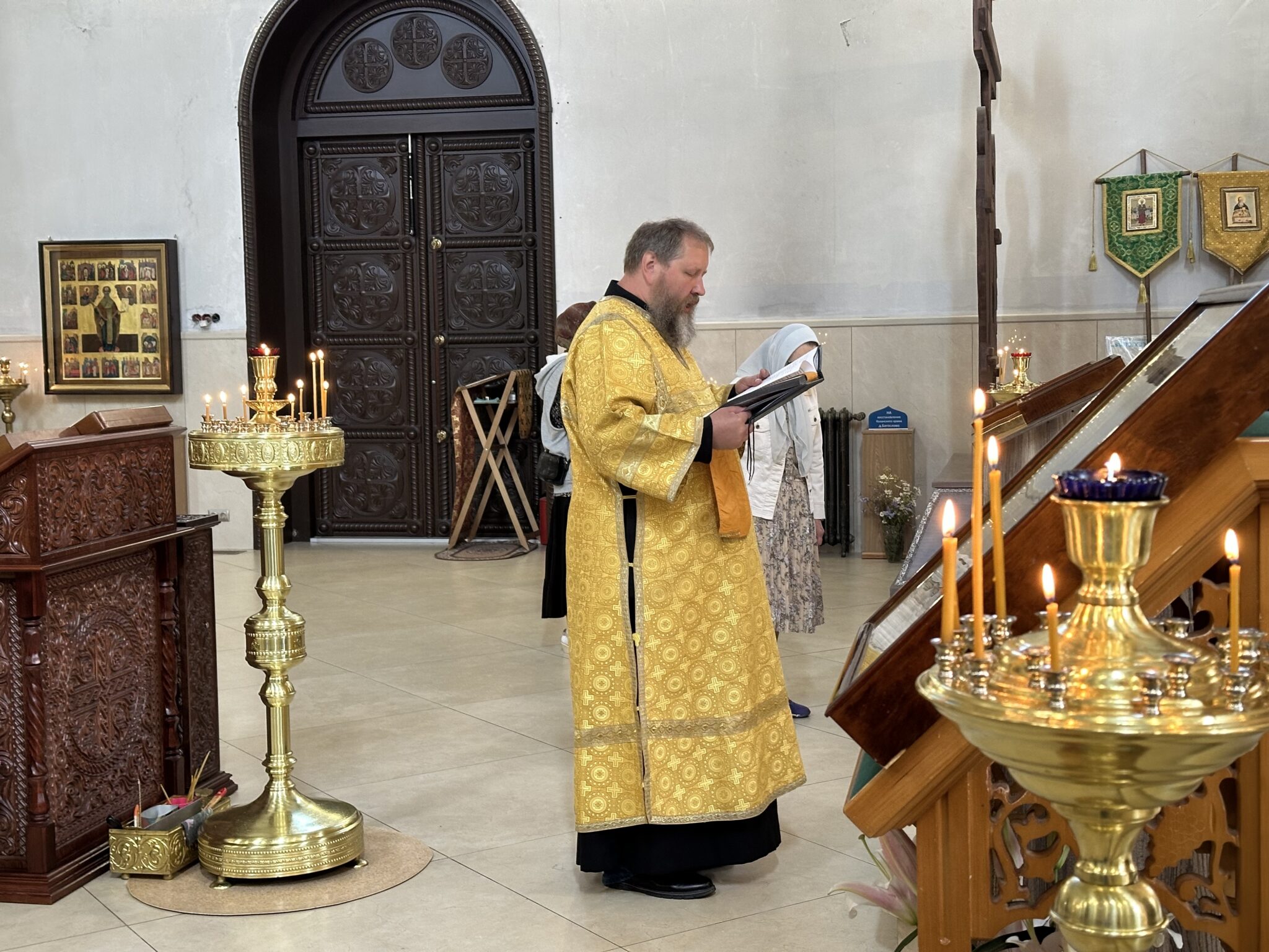 По окончании Литургии отец Димитрий вместе с прихожанами совершил праздничное молебное пение с молитвой ко благоверным князьям об умножении любви и благополучии в семьях.