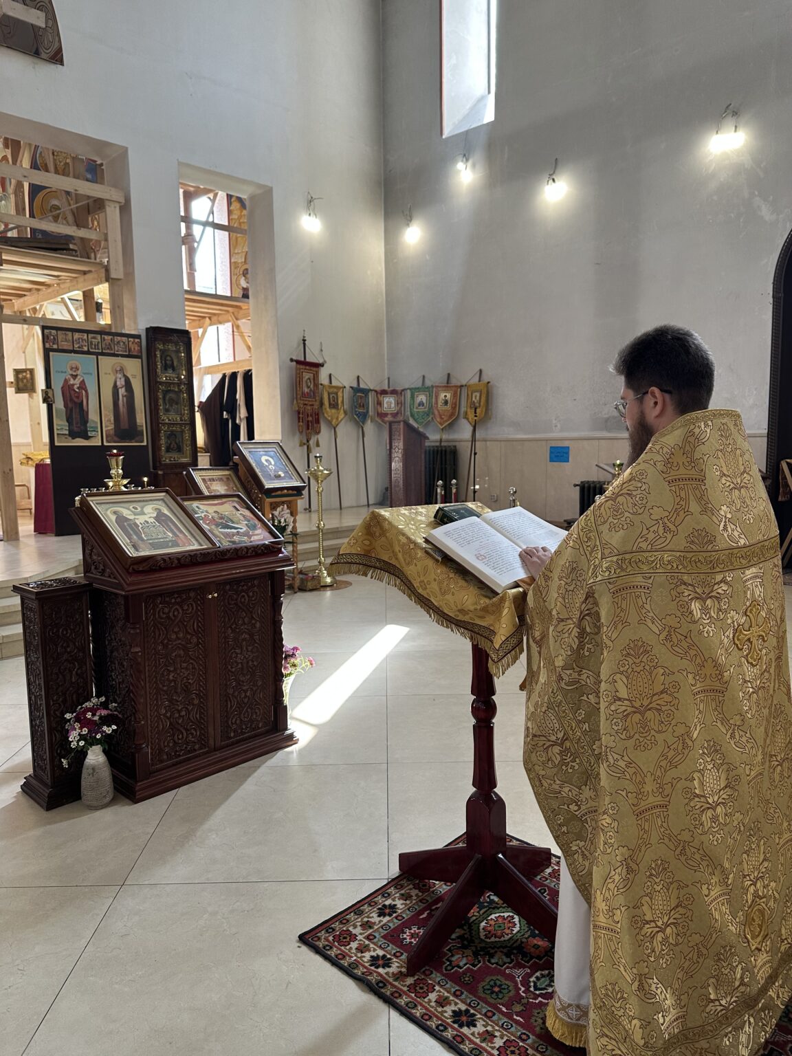 После чтения Евангелия настоятель храма священник Димитрий Третьяков произнес проповедь.