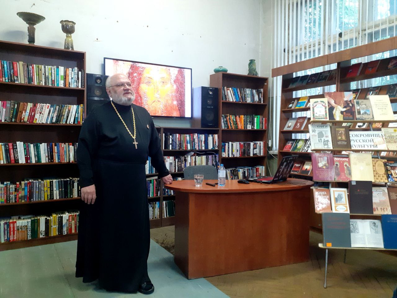 Наследие святых Кирилла и Мефодия из века в век продолжает творчески развиваться. Духовная основа делает русскую культуру настоящей сокровищницей. Об этом шел разговор в Центральной библиотеке на встрече с клириком фрязинского Храма Иконы Пресвятой Богородицы «Державная» протоиереем Александром Бутриным.