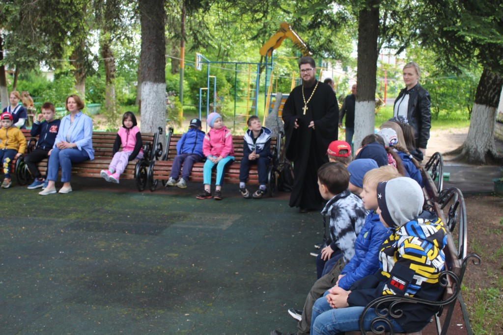 В начале обратился с напутственным словом и поздравил детей с праздником член Попечительского совета, настоятель Державного храма г. Фрязино священник Димитрий Третьяков.