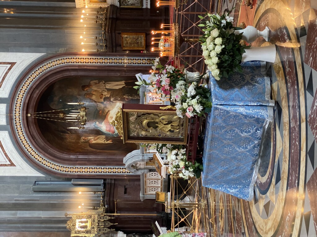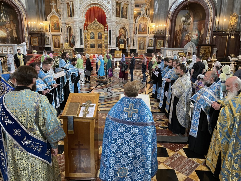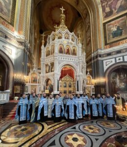 27 мая 2023 года в кафедральном соборном Храме Христа Спасителя у чудотворного образа Феодоровской иконы Божией Матери, принесенного по благословению Святейшего Патриарха Московского и всея Руси Кирилла из Богоявленско-Анастасииного монастыря г. Костромы, священнослужители Балашихинской епархии во главе с руководителем Пресс-службы Московской митрополии, благочинным Лосино-Петровского церковного округа священником Павлом Галушко совершили молебное пение с чтением акафиста.