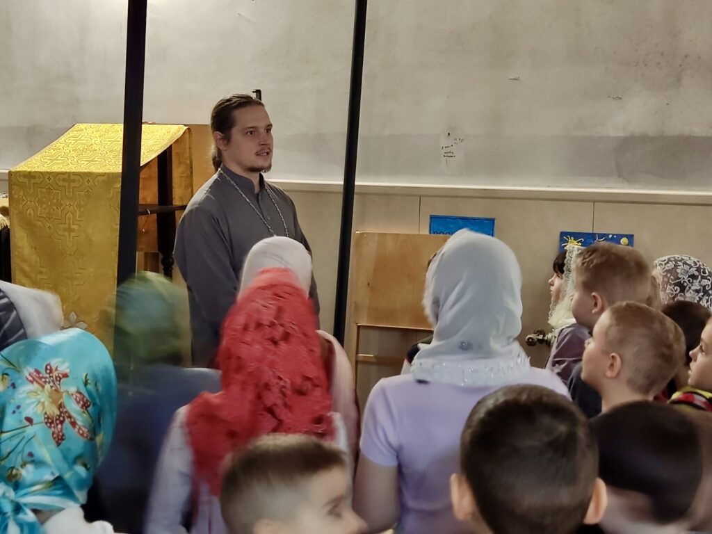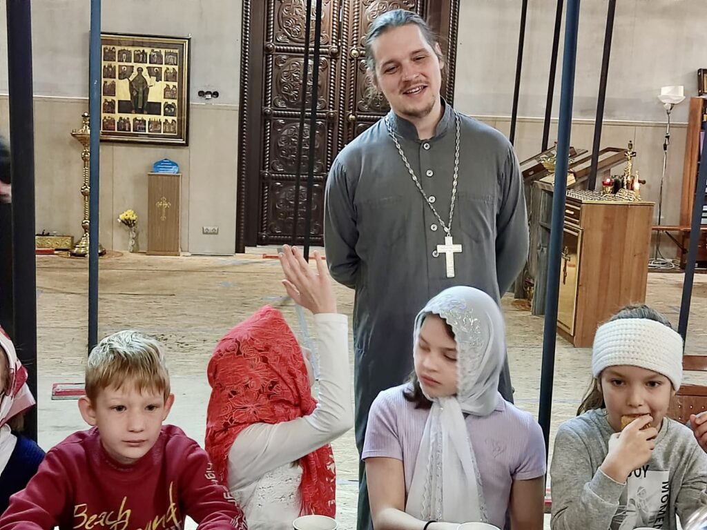 Интересную и познавательную беседу за чаепитием с ребятами провёл клирик храма священник Владимир Тарасюк.