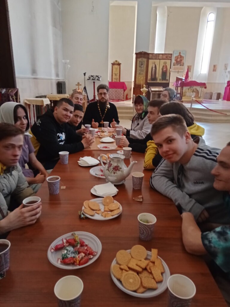 В завершение встречи состоялось чаепитие, за которым продолжилось неформальное общение. Заметим, что ребята успели помочь в расчистке территории от остатков снега. Уходя, ребята поблагодарили отца Димитрия за теплый прием и интересную беседу.