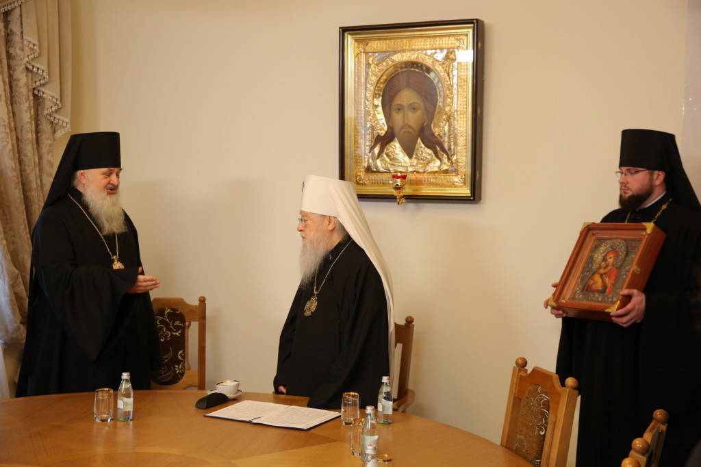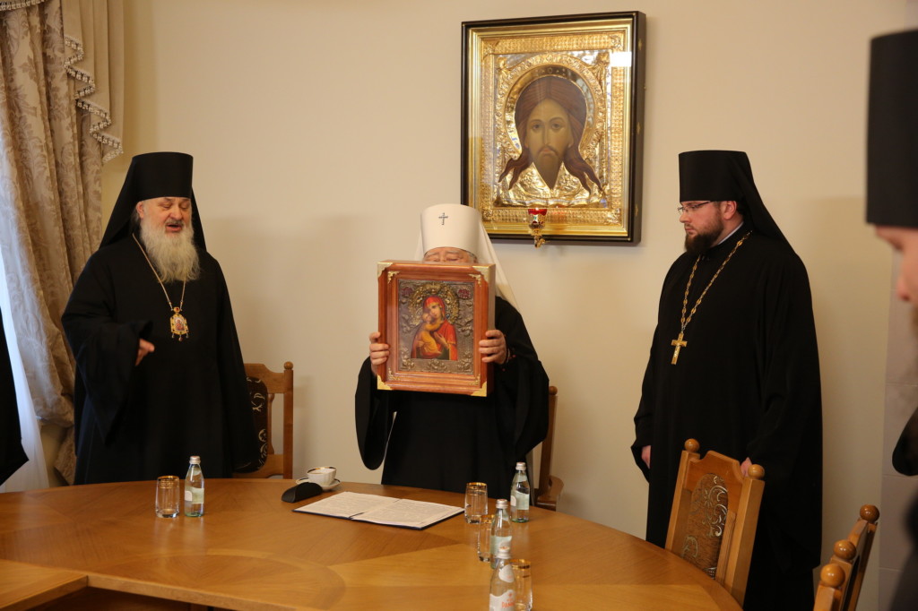 Епископ Тихон преподнес Его Высокопреосвященству икону Божией Матери.