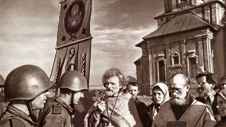 Об изменении идеологии советских властей в этот период нужно сказать особо, и об открытии православных храмов, в частности. Можно предположить, что эту идею подсказали большевикам сами фашисты. Они стали открывать храмы на оккупированных территориях. То есть это был ключевой момент. Такими действиями оккупанты как бы показывали: вот ваши власти храмы закрывали и уничтожали, а мы пришли и изменили эту ситуацию. К службе в открытых фашистами храмах привлекали наших священников. О нравственном выборе священнослужителей в такой тяжёлой ситуации хорошо рассказано в фильме «Поп». С одной стороны, служить в таком храме было равносильно предательству, а с другой стороны, открывалась реальная возможность помогать людям, находящимся в связи с двойным гнётом в очень тяжёлом положении. И здесь Иосиф Сталин решил пойти на ответный шаг. Но не только политические уловки агрессора побудили его к этому.