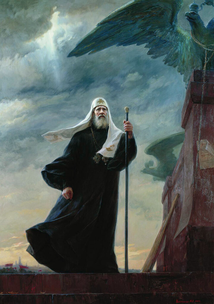 Большевики предложили нашему народу новую религию. И, как было замечено выше, предложили не без предпосылок к этому. Святитель Тихон Московский, управлявший нашей Церковью в самый трудный период её бытия, с 1918 по 1925 год, смотрел на происходящее тогда в России как на пламя очистительного огня, через которое Господь повёл Русскую Церковь. Удивительны метаморфозы истории: со времён Петра Первого, обезглавившего Русскую Православную Церковь, она 200 лет жила без Патриарха, и его новое избрание в начале XX века шло абсолютно параллельно с взятием власти в стране большевиками, которые после смерти святителя Тихона вновь оставили патриаршую кафедру опустевшей…