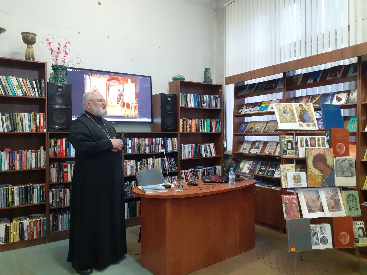 28 марта в Центральной библиотеке г. Фрязино прошла встреча с протоиереем Александром Бутриным, клириком храма иконы Божией Матери Державная г.Фрязино.