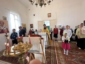 На богослужении молились жители поселка, а также ребята и родители из дома трудолюбия «НОЙ».