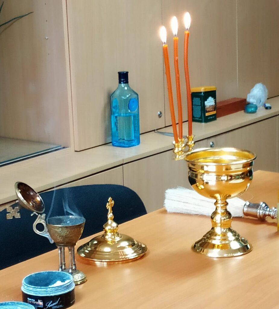 В конце молебна отец Александр покропил учащихся и педагогов святой водой и помазал их святым елеем. Была сделана памятная фотография и состоялось традиционное сестренское чаепитие.