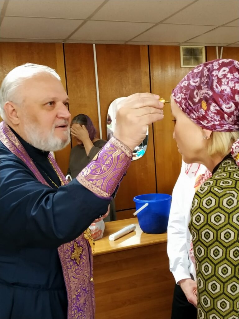В конце молебна отец Александр покропил учащихся и педагогов святой водой и помазал их святым елеем. Была сделана памятная фотография и состоялось традиционное сестренское чаепитие.