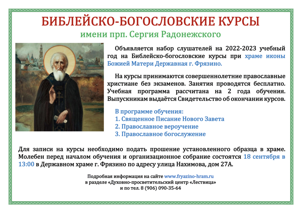 Набор слушателей на Библейско-богословские курсы ГлавнаяНовости / Набор слушателей на Библейско-богословские курсы