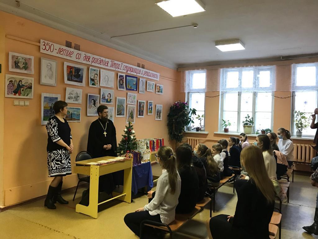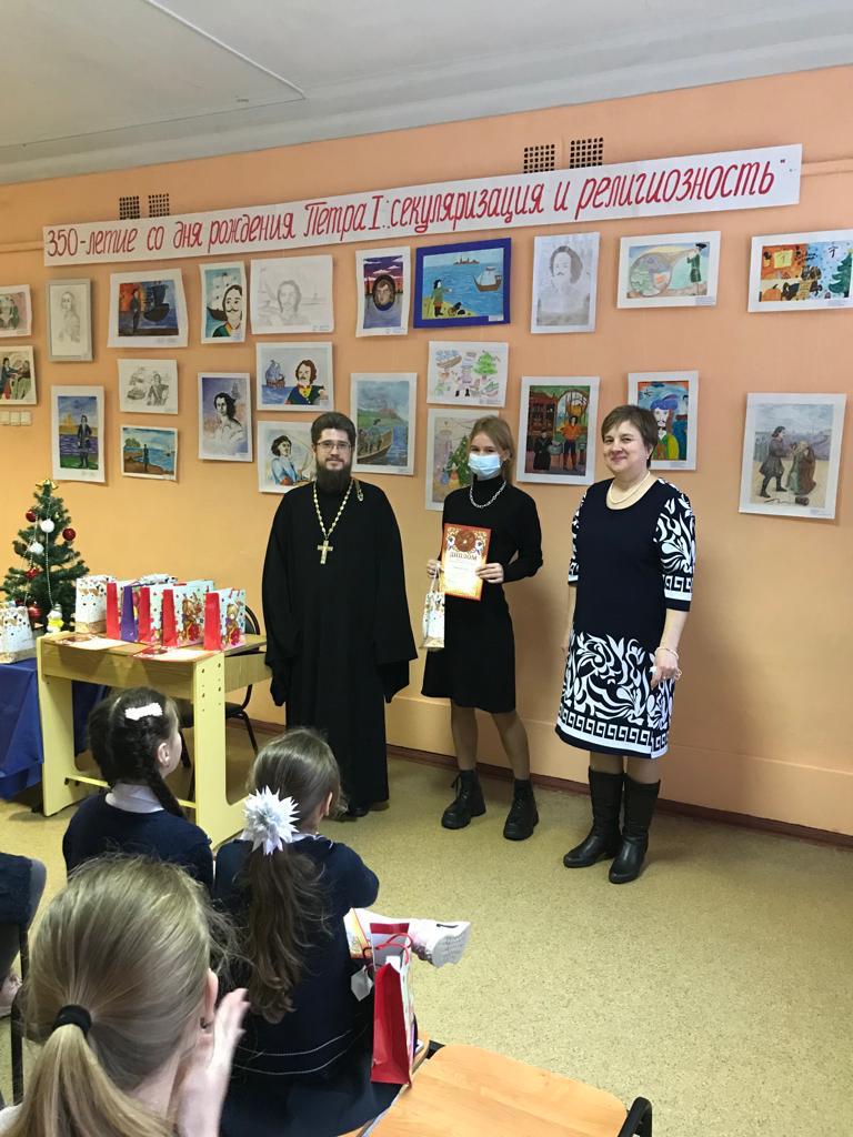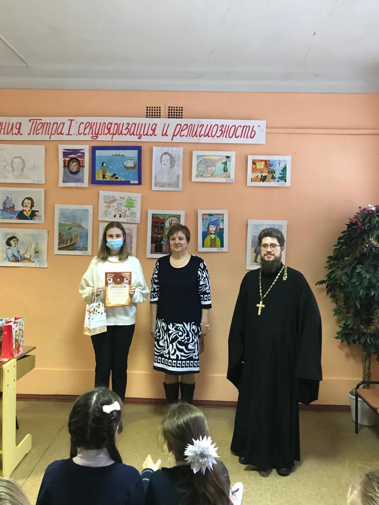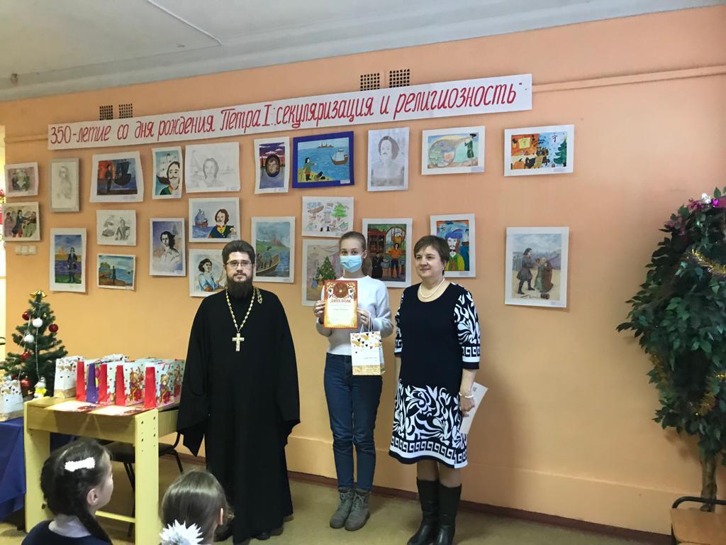 16 декабря в Центре детского творчества г. Фрязино настоятель Державного храма священник Димитрий Третьяков принял участие в мероприятии, посвященному подведению итогов муниципального конкурса рисунков, по теме «350- летие со дня рождения Петра I: секулярный мир и религиозность».