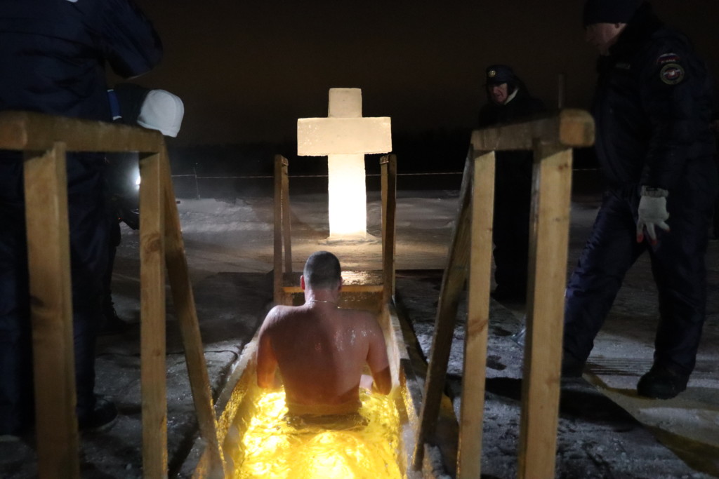 У водно-спасательного поста были организованы места для переодевания и горячий чай. Для обеспечения безопасности на месте дежурили спасатели, представители полиции, а также медицинские работники скорой помощи.