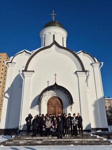 Посещение храма иконы Божьей матери Державная во Фрязино 17 февраля 2026 года, в рамках Недели православной молодежи обучающиеся группы 3519/2 «Информационные системы и программирование» посетили храм иконы Божией матери Державная г. Фрязино и встретились со священником Владимиром Тарасюком. Встреча прошла в формате экскурсии и беседы-чаепития в храме. Отец Владимир рассказал ребятам историю возникновения храма и показал храм изнутри, где все еще продолжаются отделочные работы, но уже ведутся службы, рассказал об устройстве храма, особое внимание уделив алтарной части. Затем в уголке храма состоялась душевная беседа за чашкой чая, где ребята делились с отцом Владимиром рассказами о студенческой жизни и специальности, которую они получают, вызвав у священника живой интерес. Организовала экскурсию и сопровождала ребят в поездке социальный педагог Елена Владимировна Фрибус.