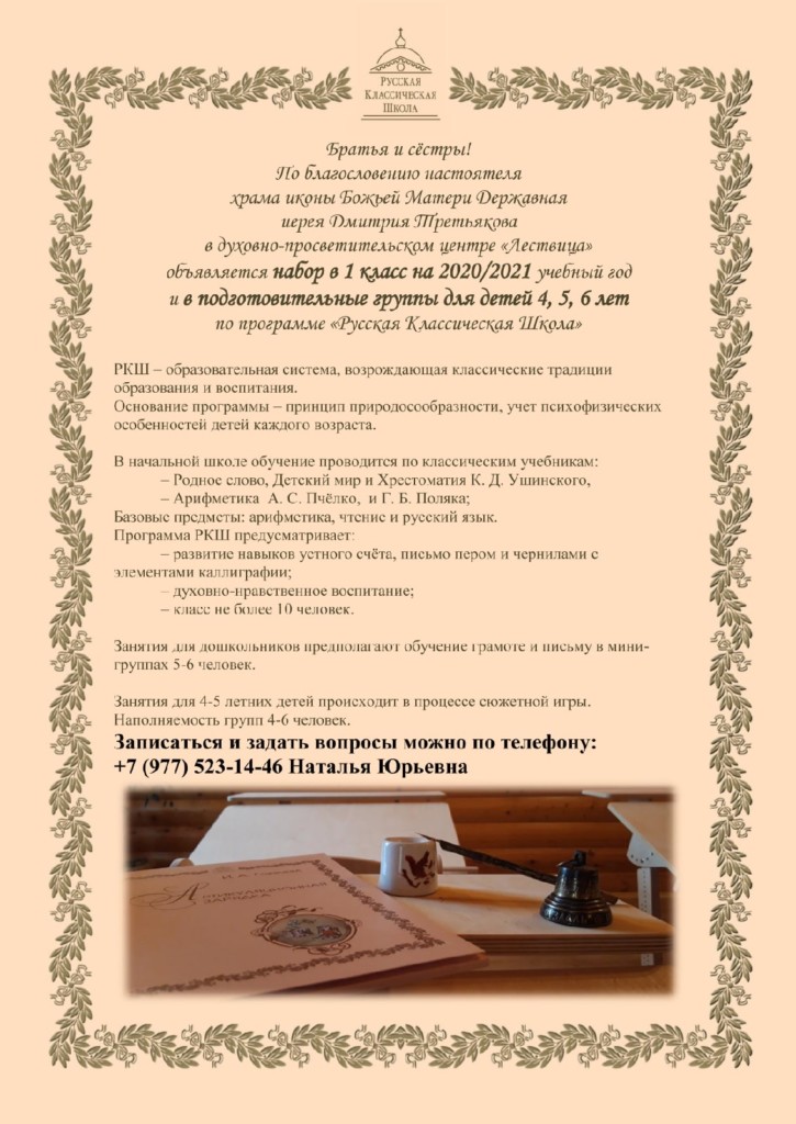 Объявляется набор в 1 класс и в подготовительные группы по программе «Русская Классическая Школа» ГлавнаяМиссионерское служение / Объявляется набор в 1 класс и в подготовительные группы по программе «Русская Классическая Школа»