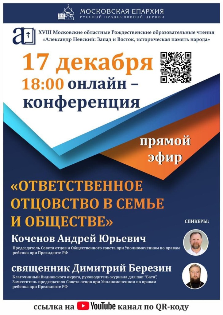 17 декабря в 18:00 на YouTube-канале Московской епархии состоится онлайн-конференция на тему «Ответственное отцовство в семье и обществе».