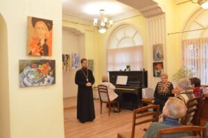 С событием присутствующих тепло поздравили настоятель Державного храма г. Фрязино священник Дмитрий Третьяков и директор центра Валентина Николаевна Сергеева. А Вероника Валерьевна Исайчева представила гостям выставку.